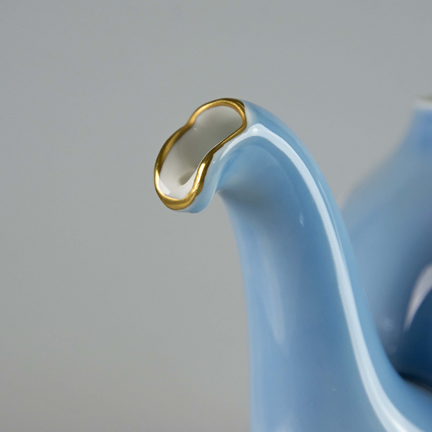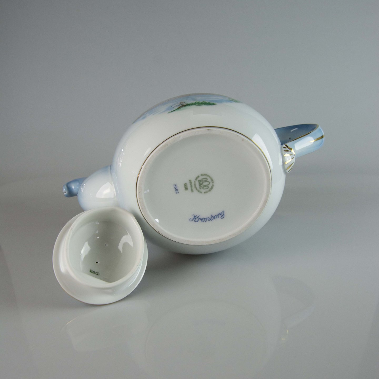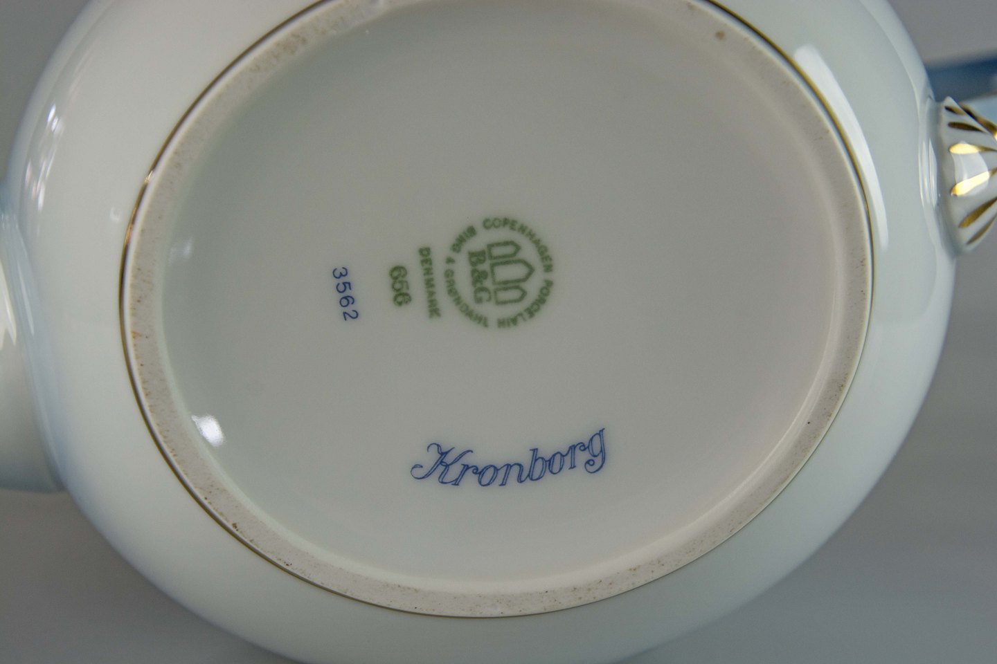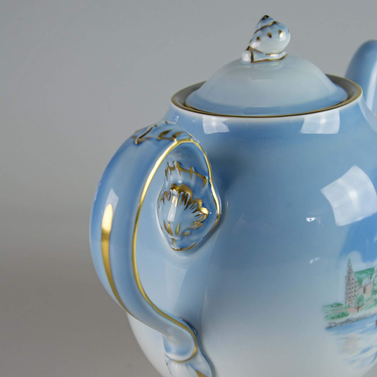 Tekande i porcelæn fra Danmarksstellet med guldkant og motiv af Kronborg nr. 656/3562