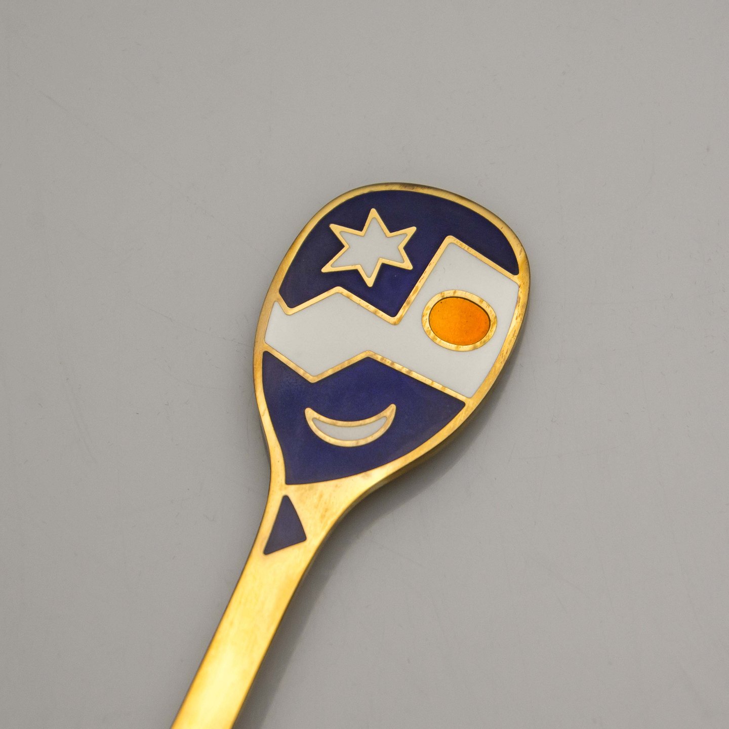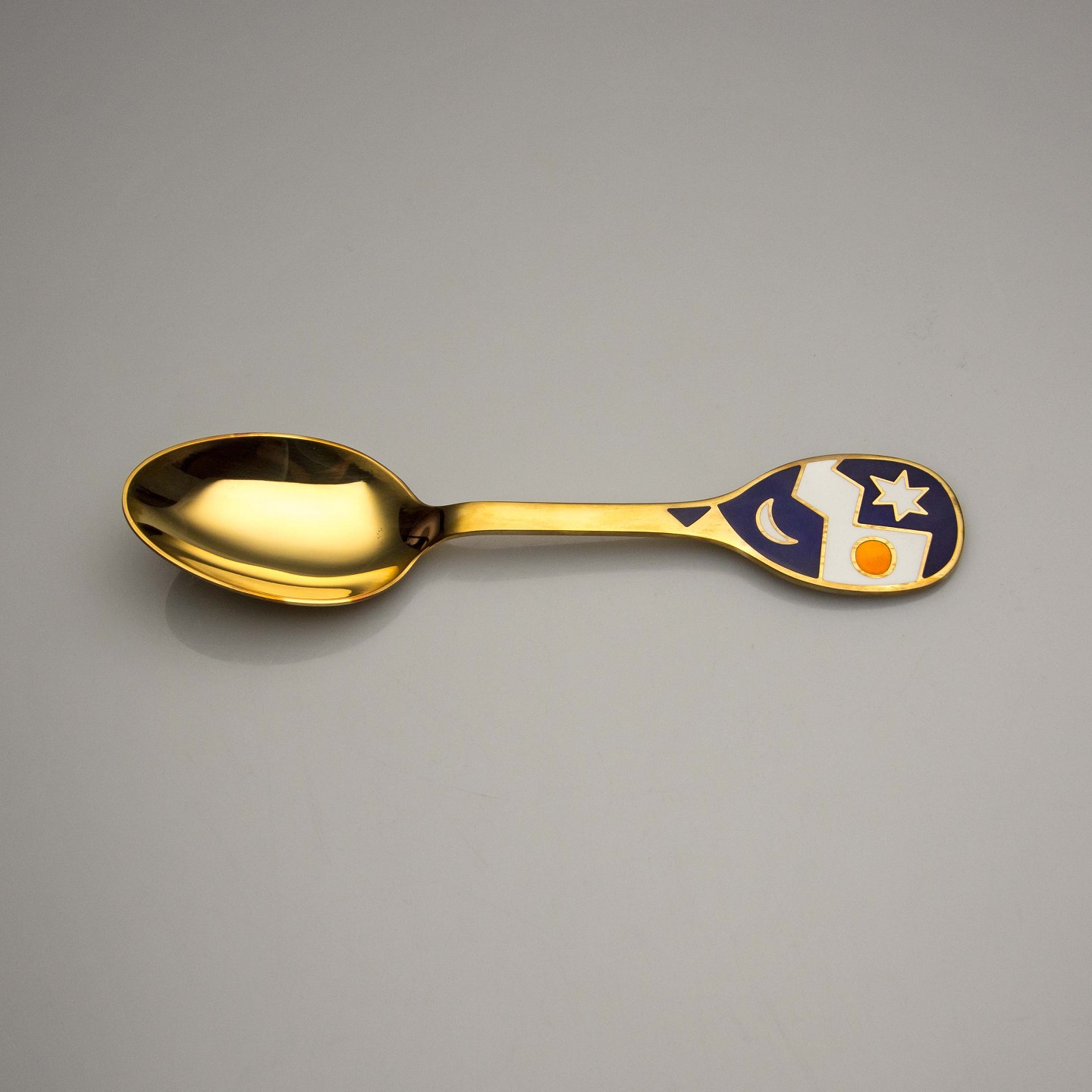 Juleske år 2004 i guldbelagt sterling sølv med stjerne, sol og måne motiv