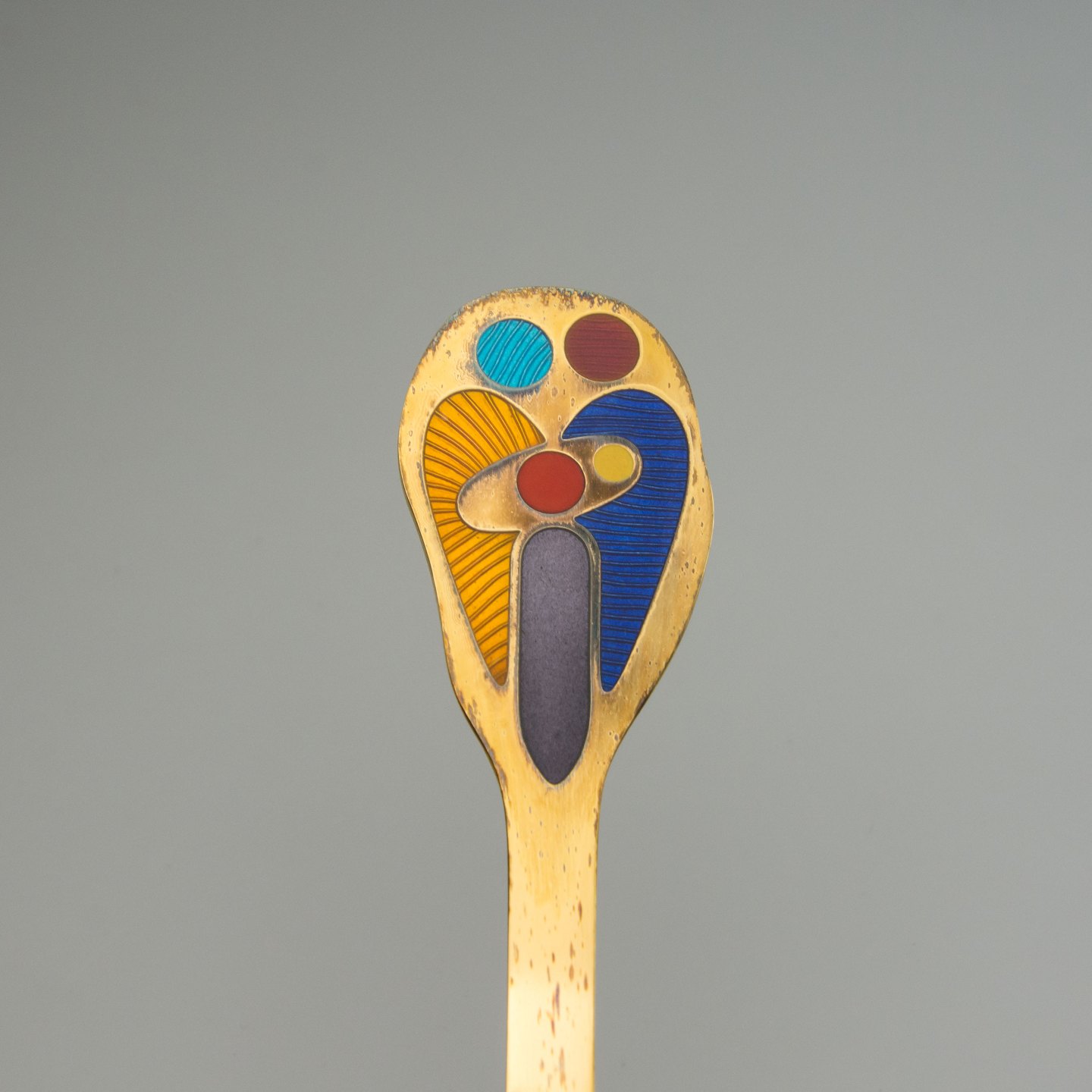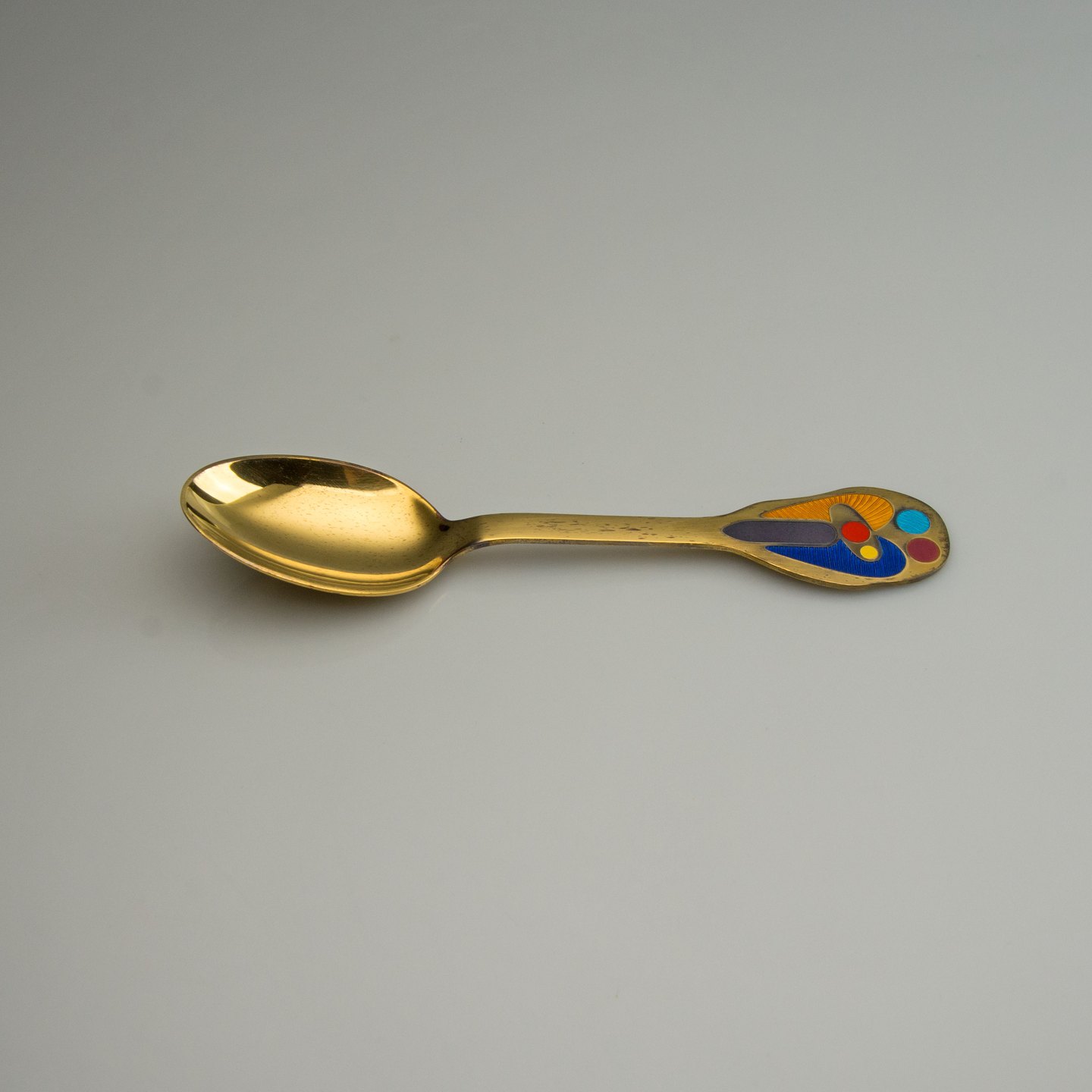 Juleske fra år 2000 med motivet hjerteknop i forgyldt sølv