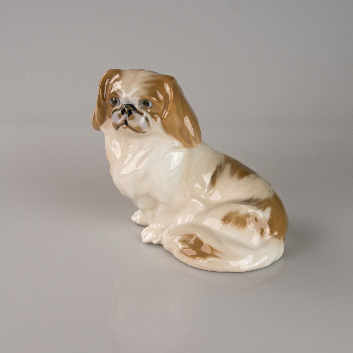 Figur i porcelæn med motiv af siddende Pekingeser nr. 1772