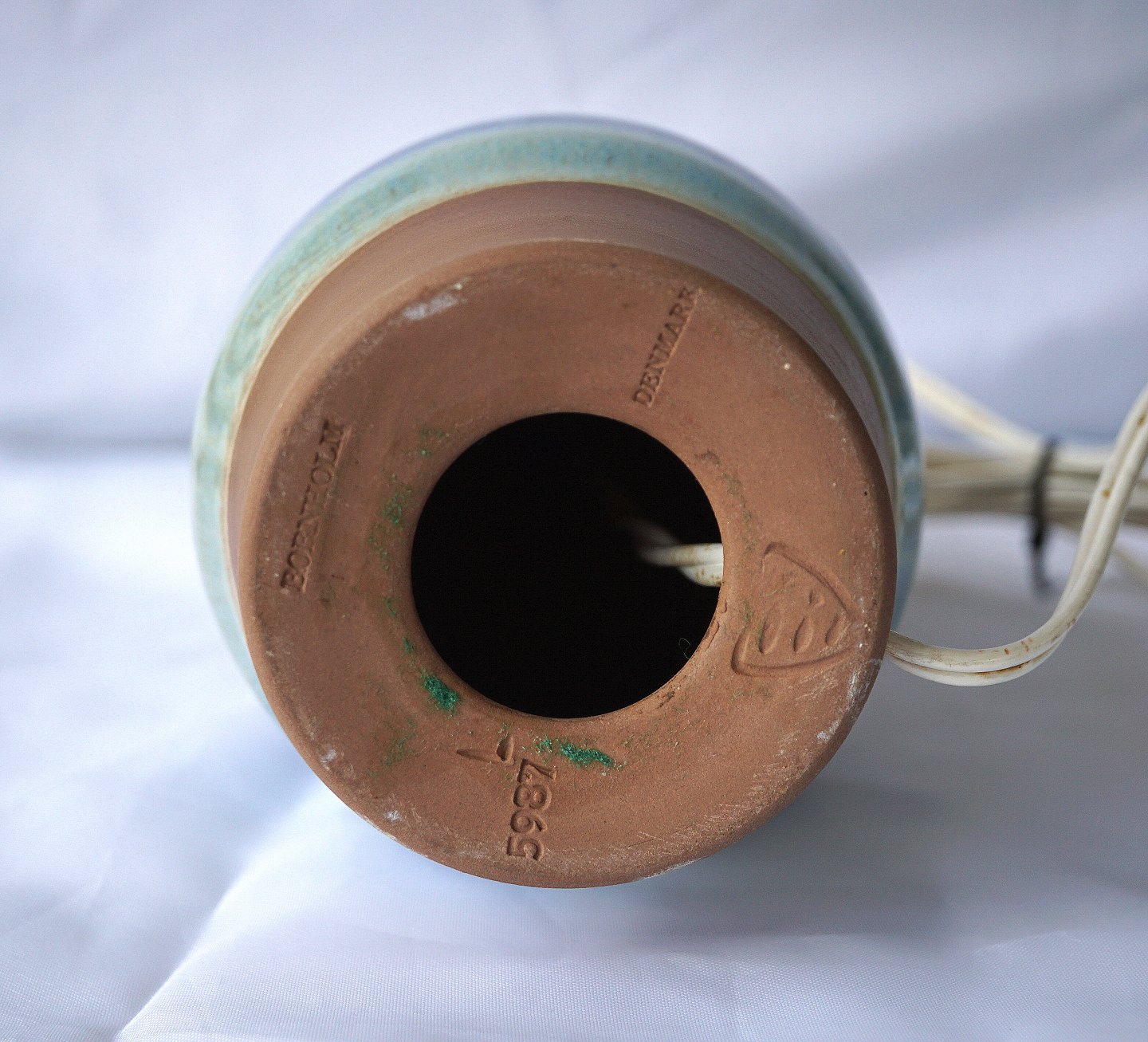 Bordlampe af keramik, nr. 5967, Michael Andersen. Bordlampen er i forskellige blå farver