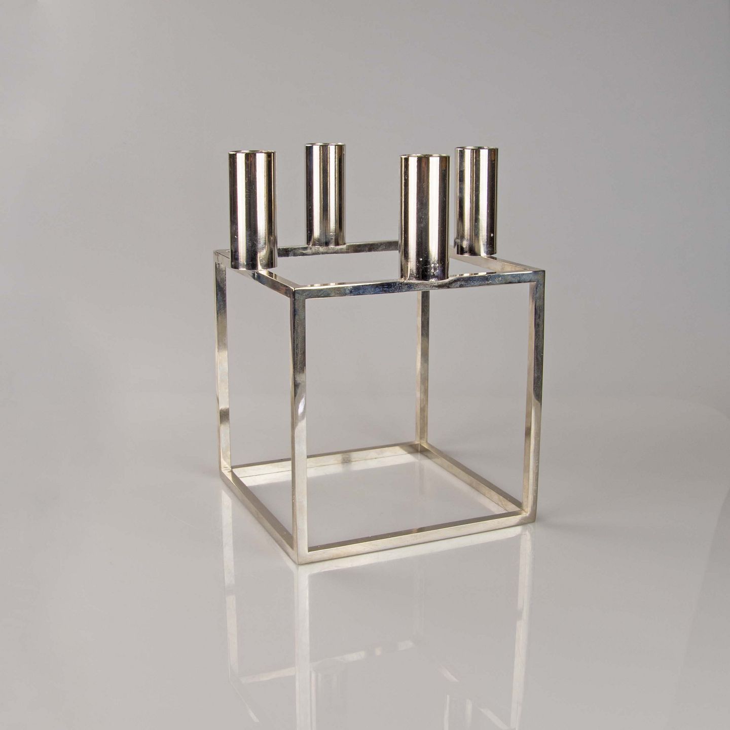 Kubus lysestage i nikkel med fire holdere