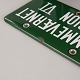 Skilt i grøn og hvid emalje med teksten Hjemmeværnet region VI
