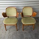 Et sæt armstole i teaktræ betrukket med flaskegrønt velour