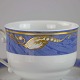 Kop med lyseblå marmoret bort dekoreret med gylden blomsterknop.