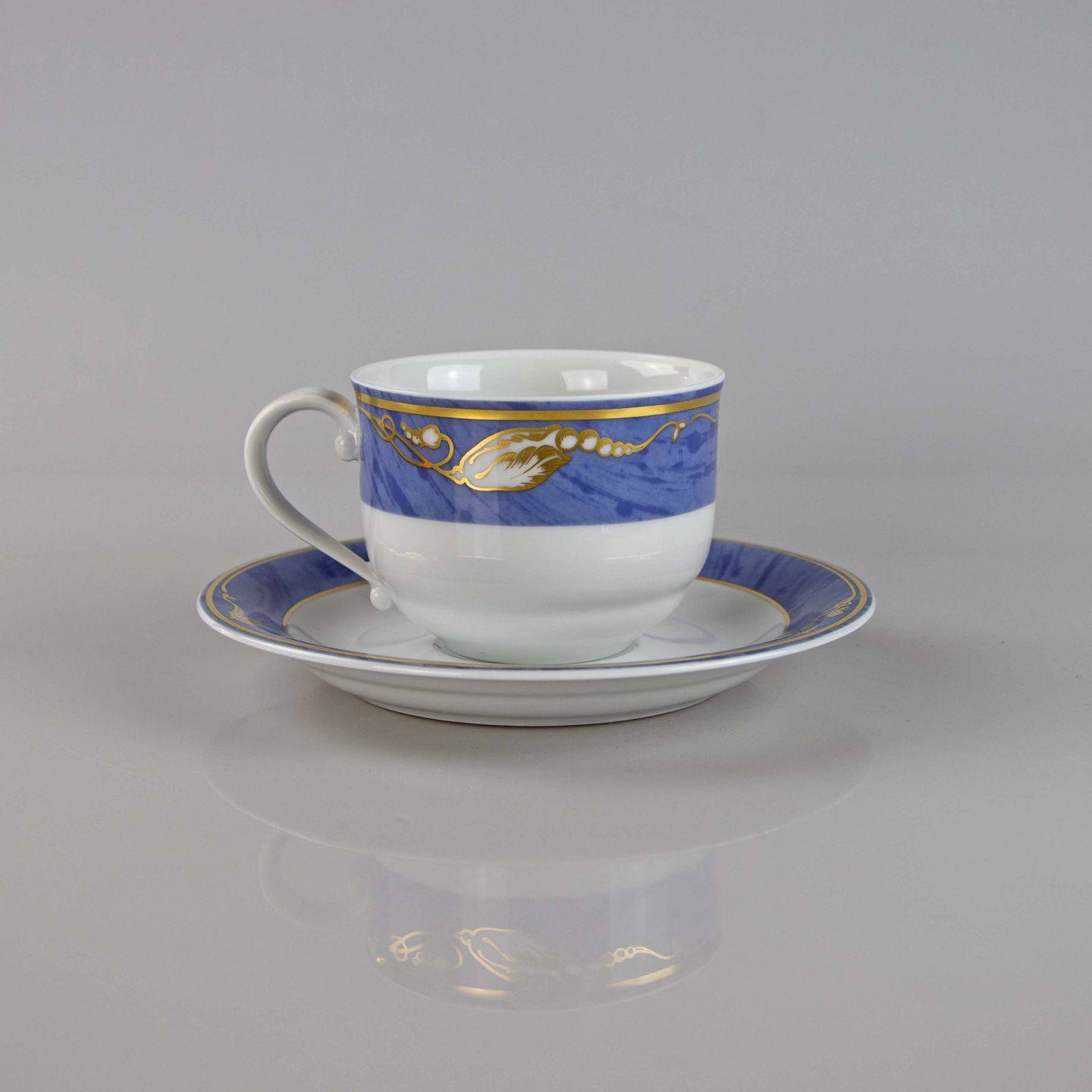 Kaffekop med underkop i porcelæn fra stellet Lyseblå magnolia nr. 072 og 073