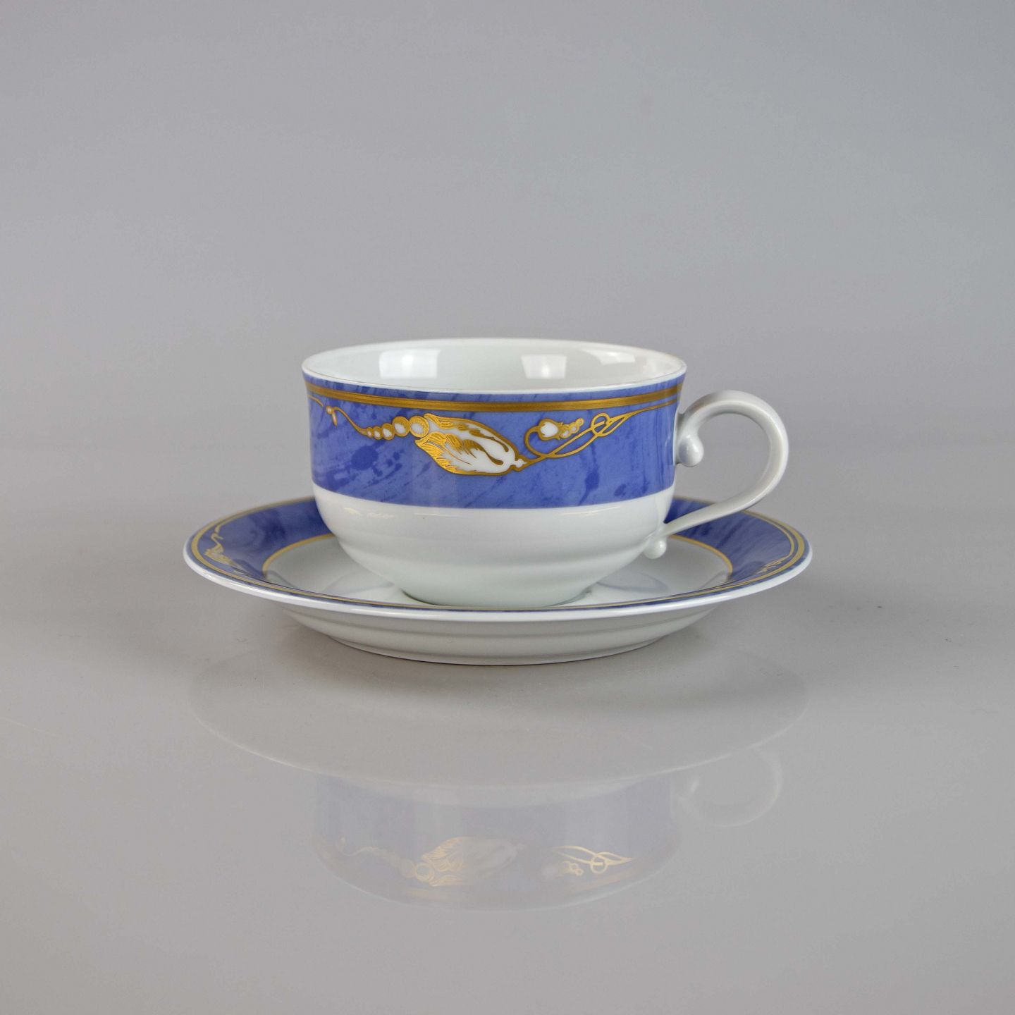 Tekop med underkop i porcelæn fra stellet Lyseblå magnolia nr. 081 og 073