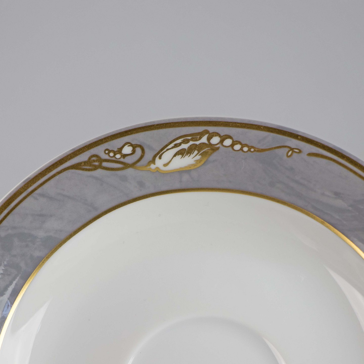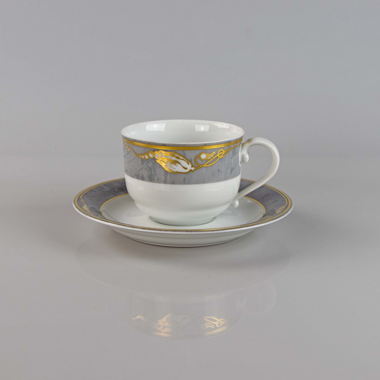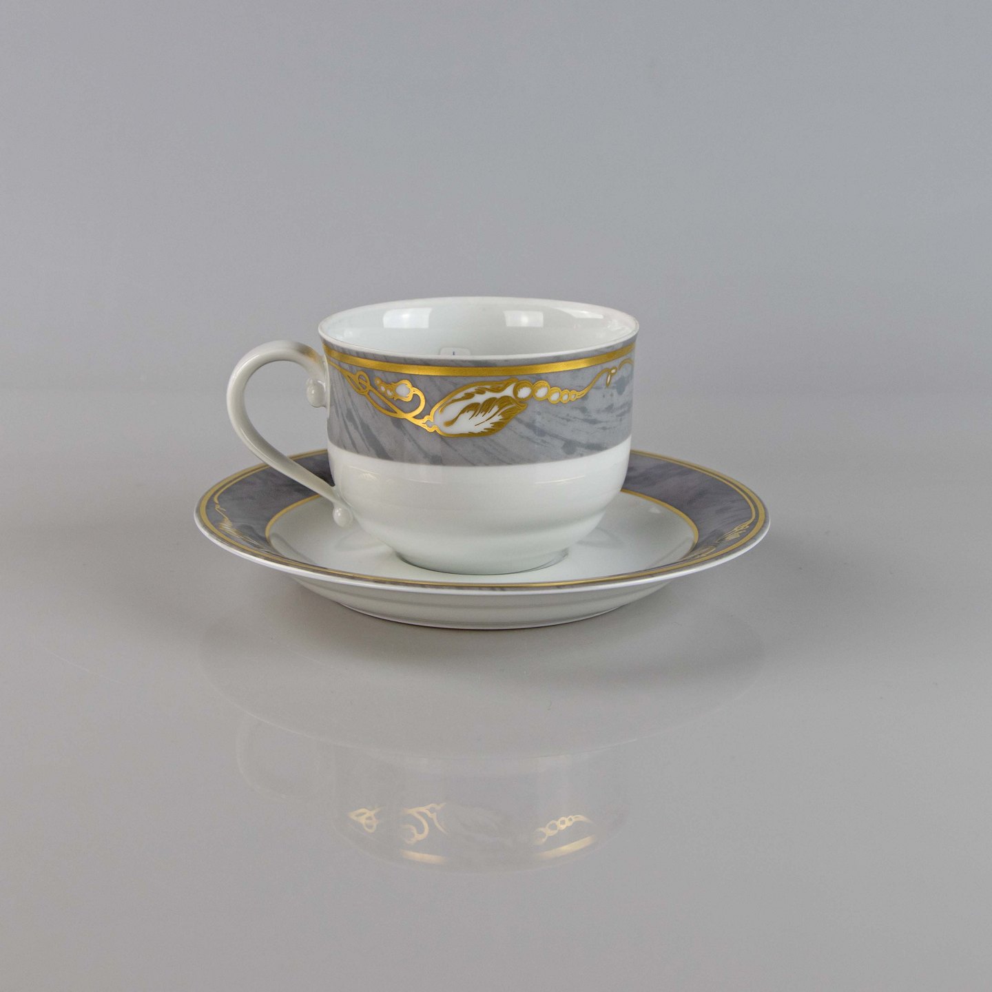 Kop med grå marmoret bort dekoreret med gylden blomsterknop.