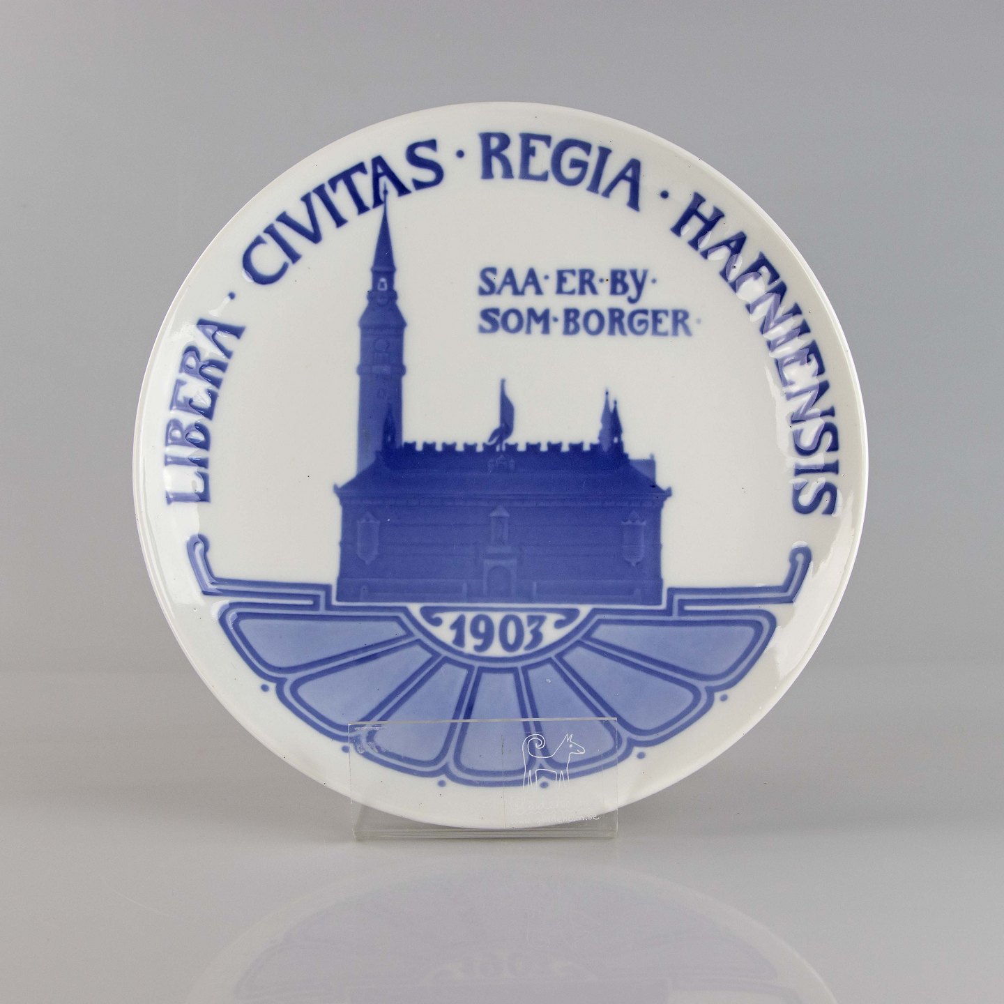 Mindeplatte i porcelæn med motiv af Rådhuset i København 1903 nr. 151