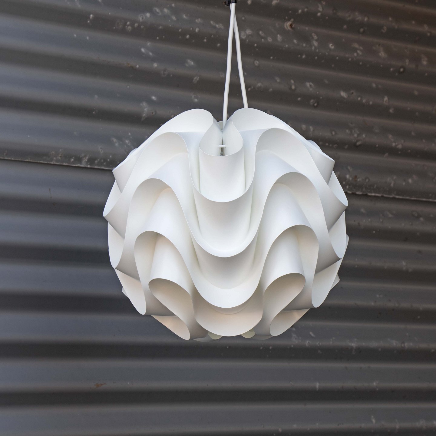 Rund pendel i hvidt plast