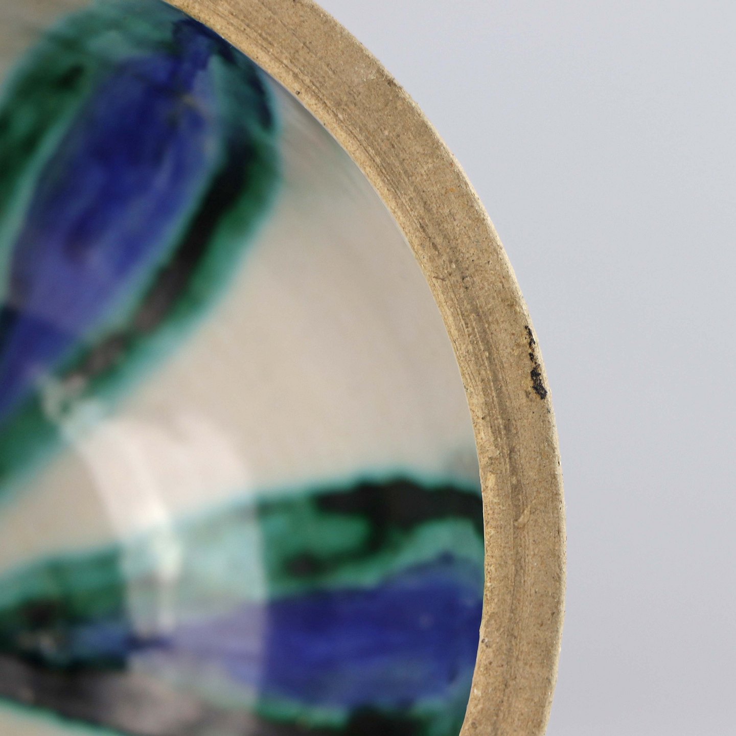 Skål i keramik med fuglemotiv og indvendigt glasur med mønster