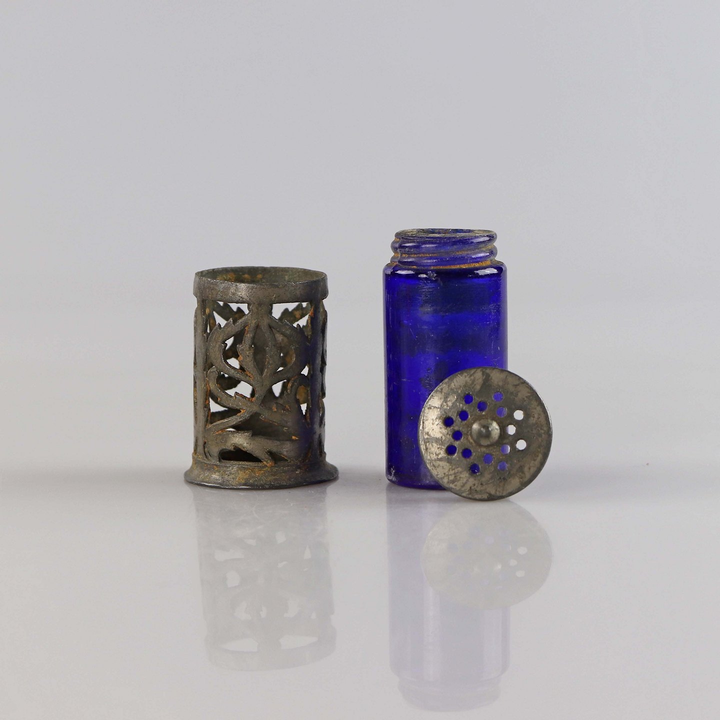 Saltbøsse i glas og metal