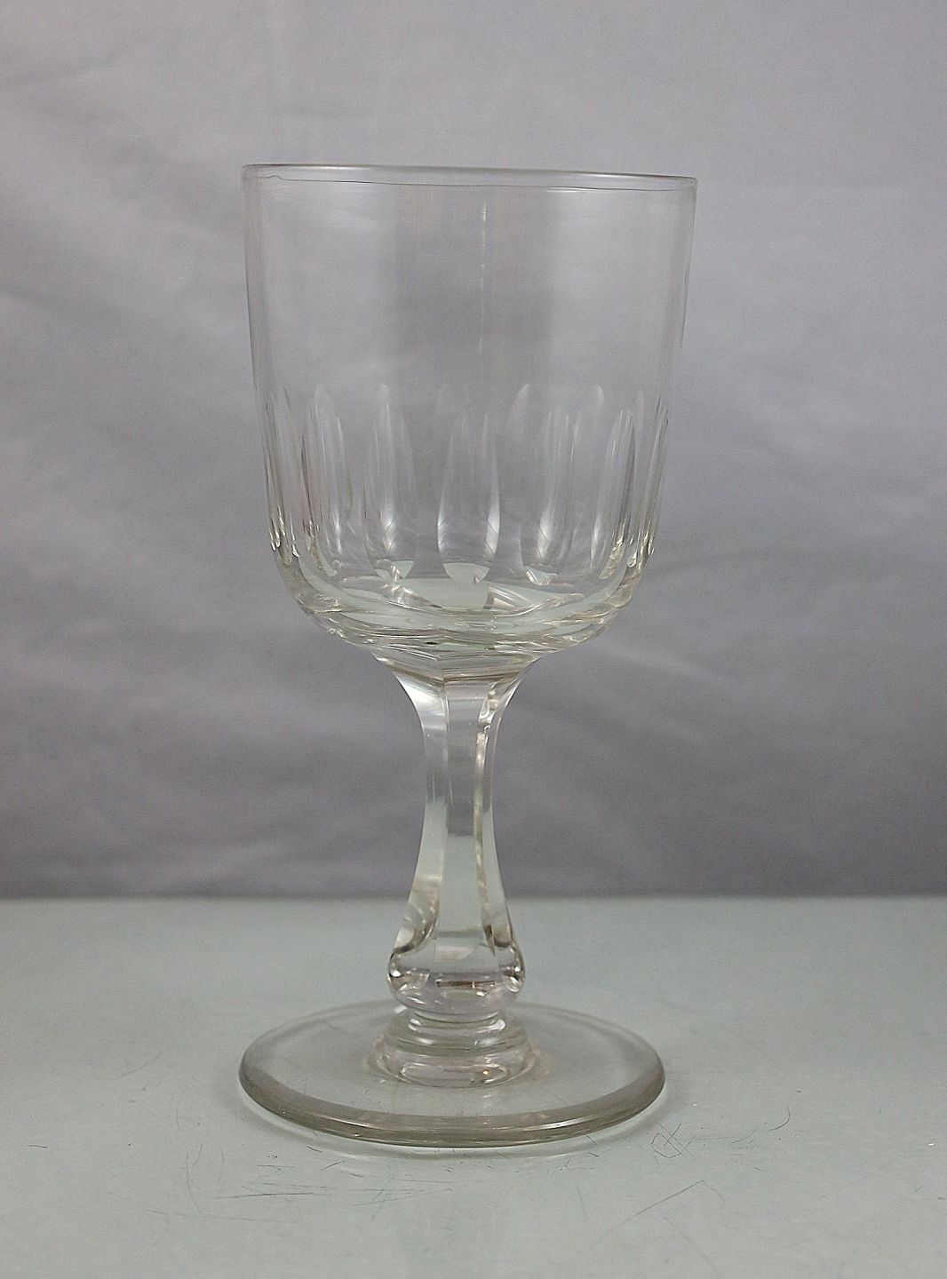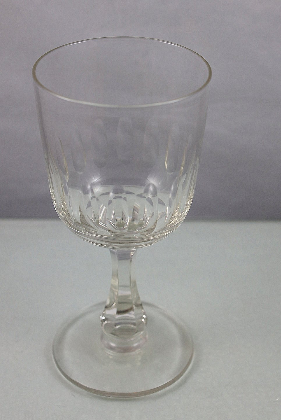 Glas med olive-slibninger på glasset, stilken er facetslebet