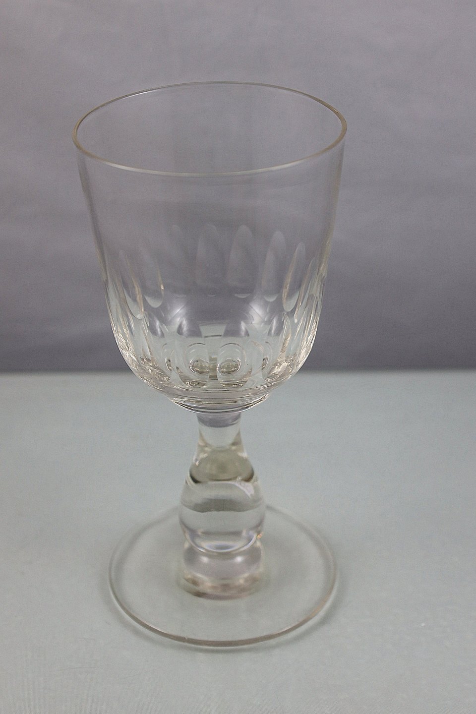 Kastrup glas med oliven slibning, kalkformet kumme på balusterstik