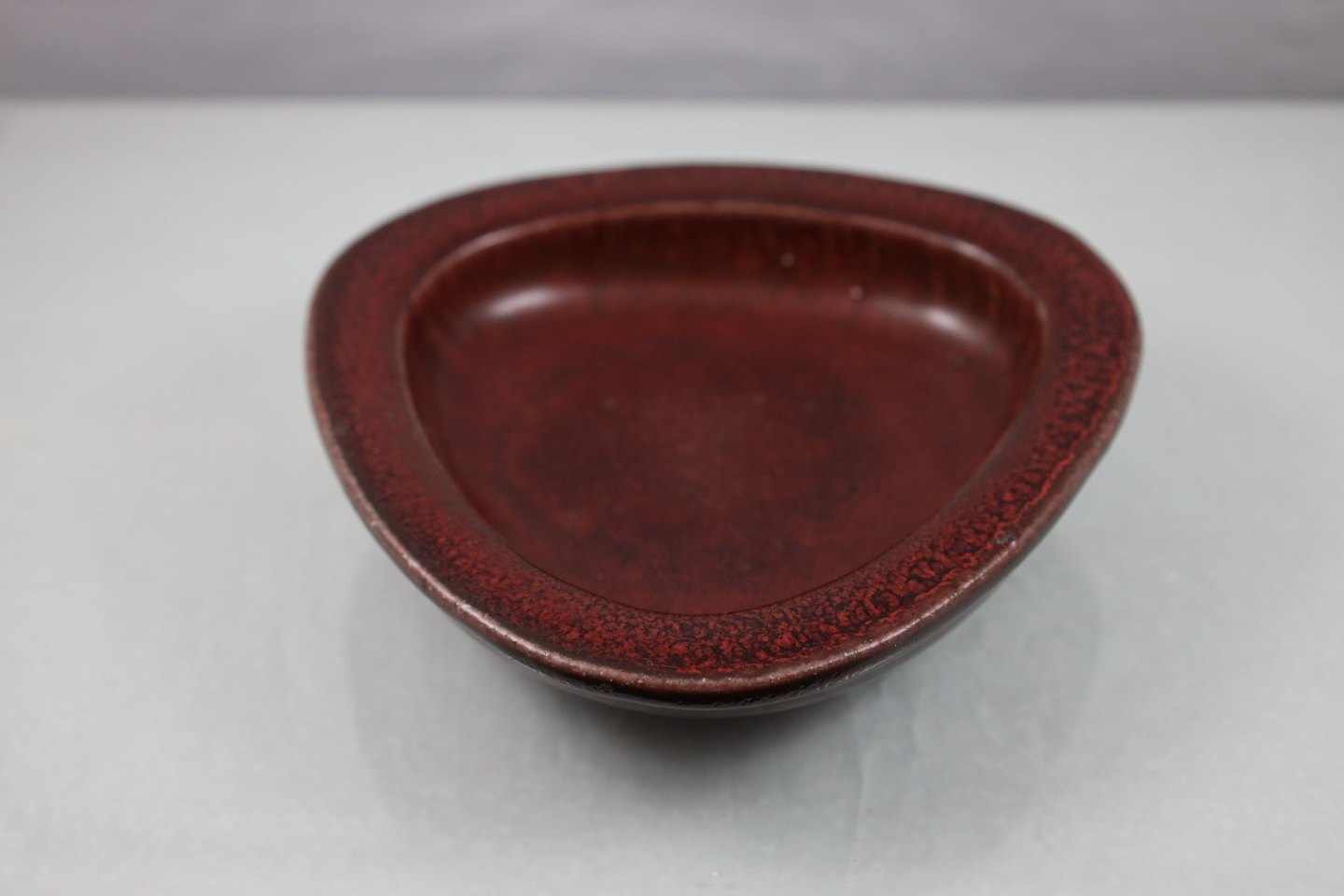 Royal Copenhagen 3-kantet fad, fadet er okseblodsrødt
