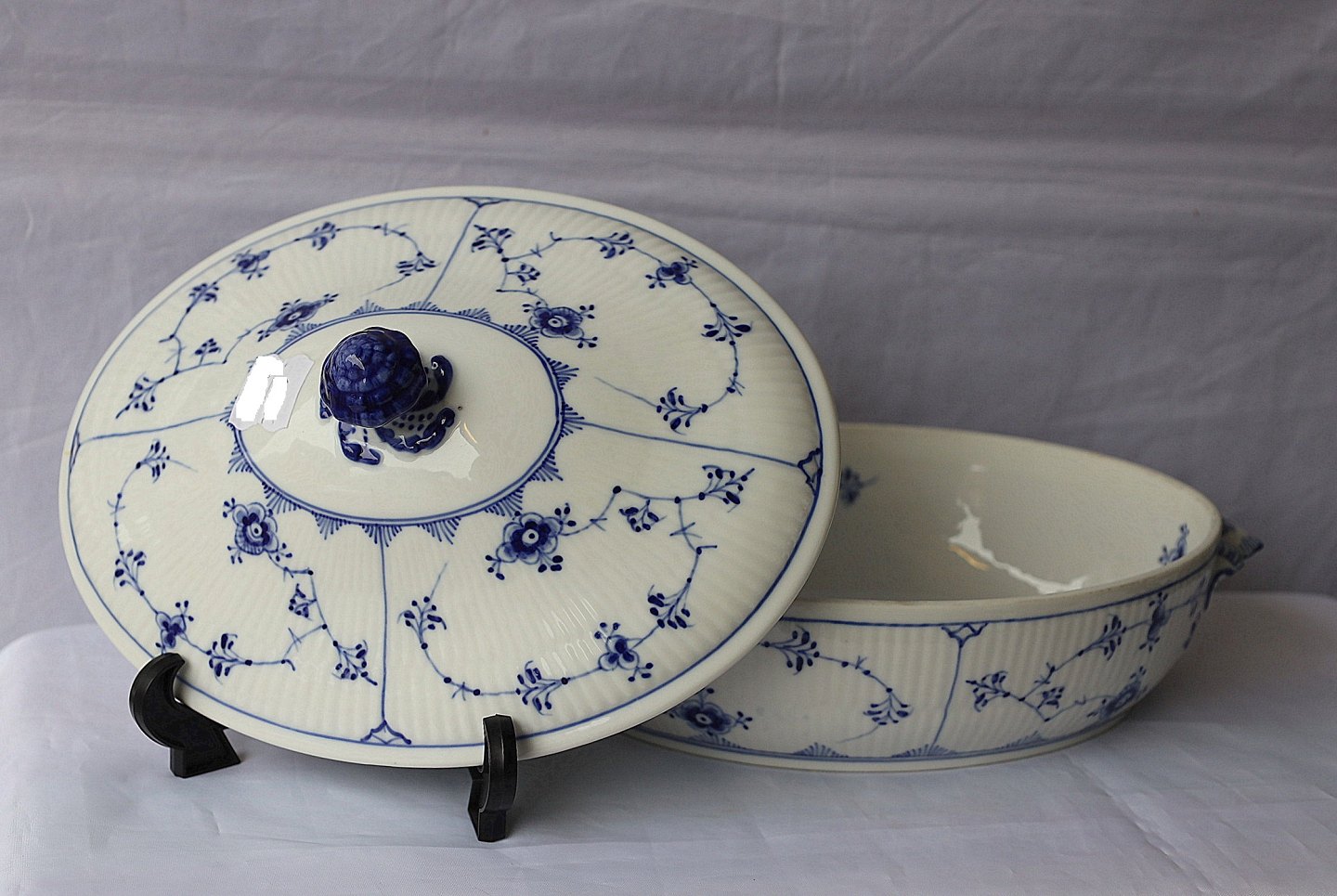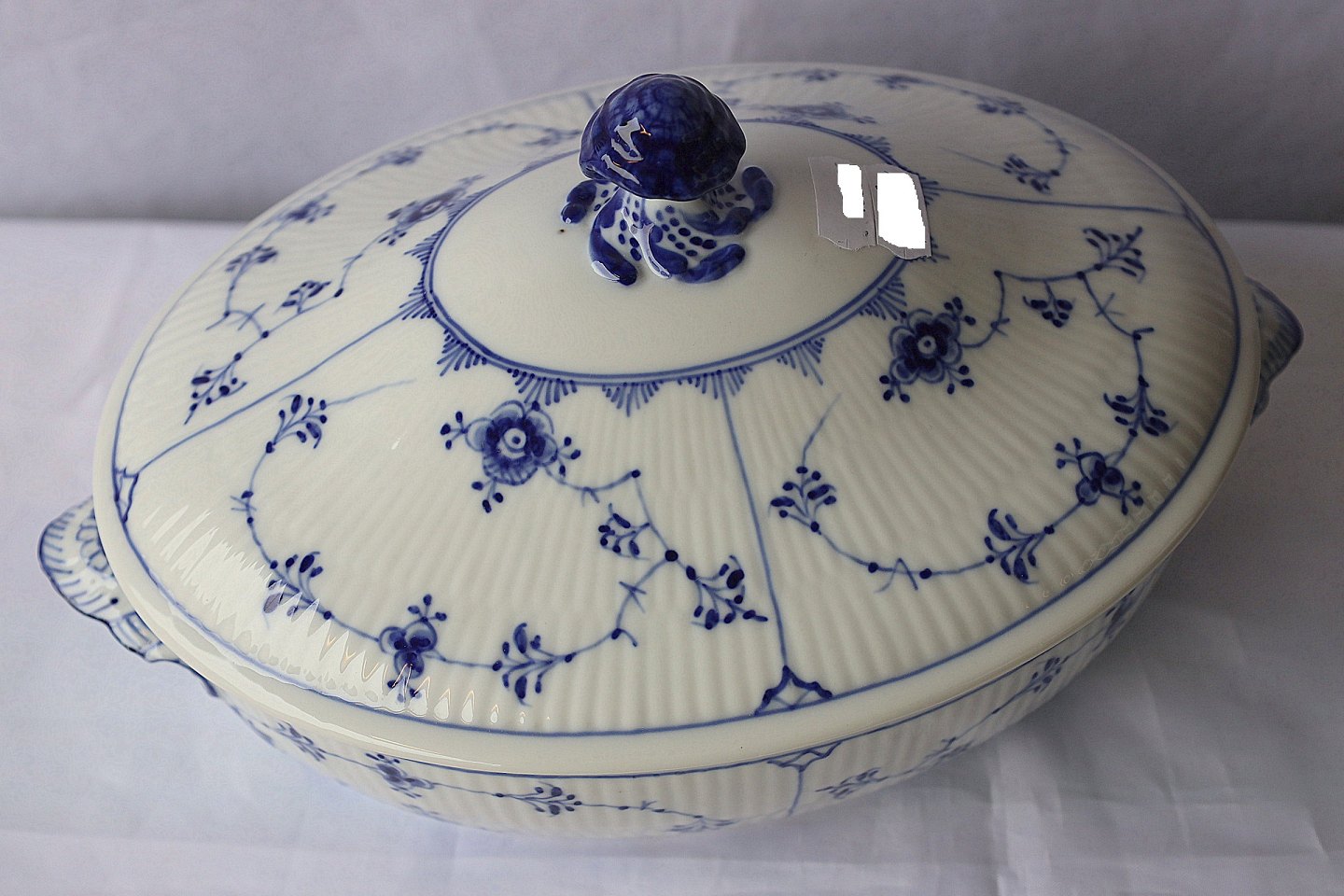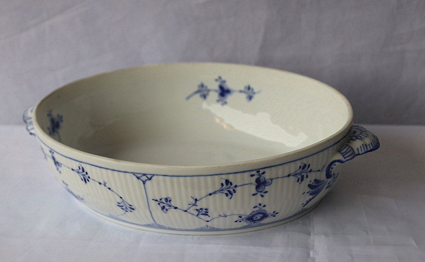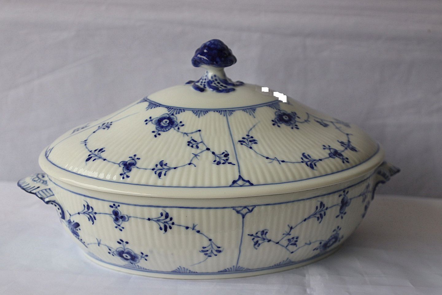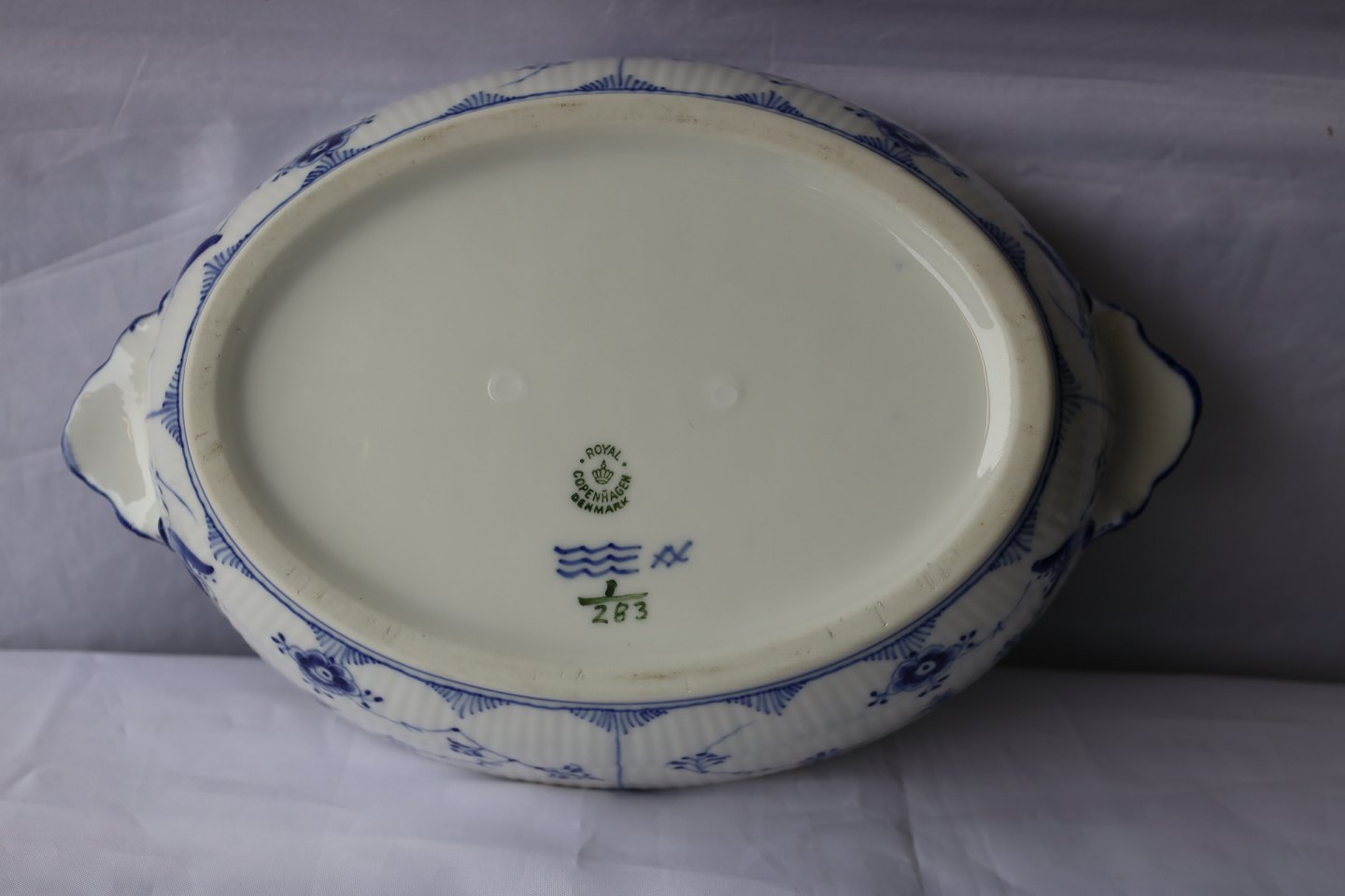 Royal Copenhagen. Musselmalet riflet terrin, nr. 1/283, terrinen er oval. 1. sortering.