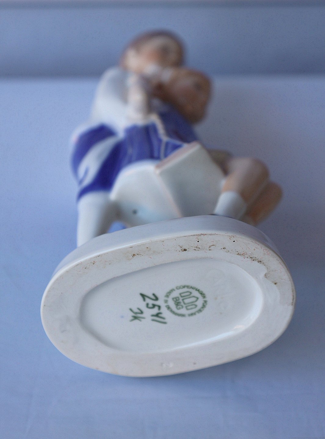 B&G, figur, porcelæn, gyngetur, leg, blå kjole