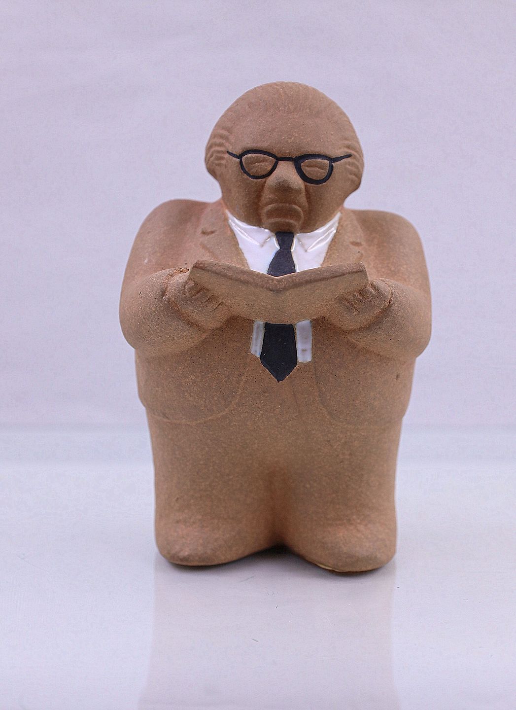 Lisa Larson for Gustavsberg. "Gunnar Sträng" er lavet som sparebøsse. "Gunnar Sträng" Var en af de store politikere, i socialdemokratiet, i 1900-tallet. Han var finansminister i over 20 år. "Gunnar Sträng" 1906-1992
