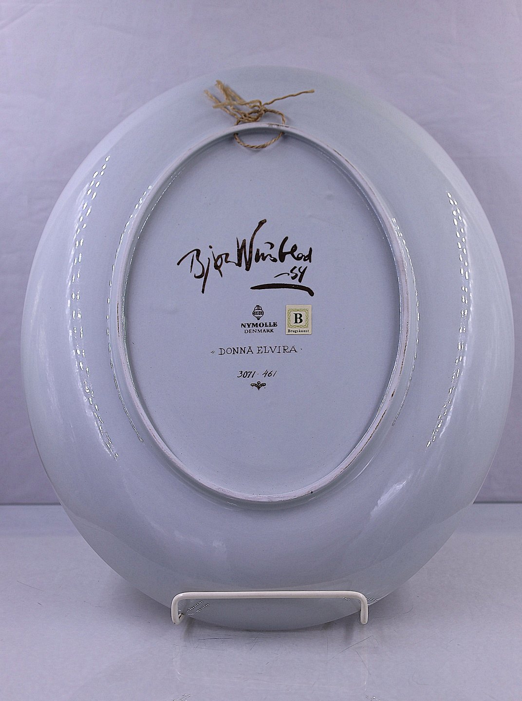 Bjørn Wiinblad platte nr. 3071-461."Donna Elvira" er en oval platte, der også kan bruges til ophæng