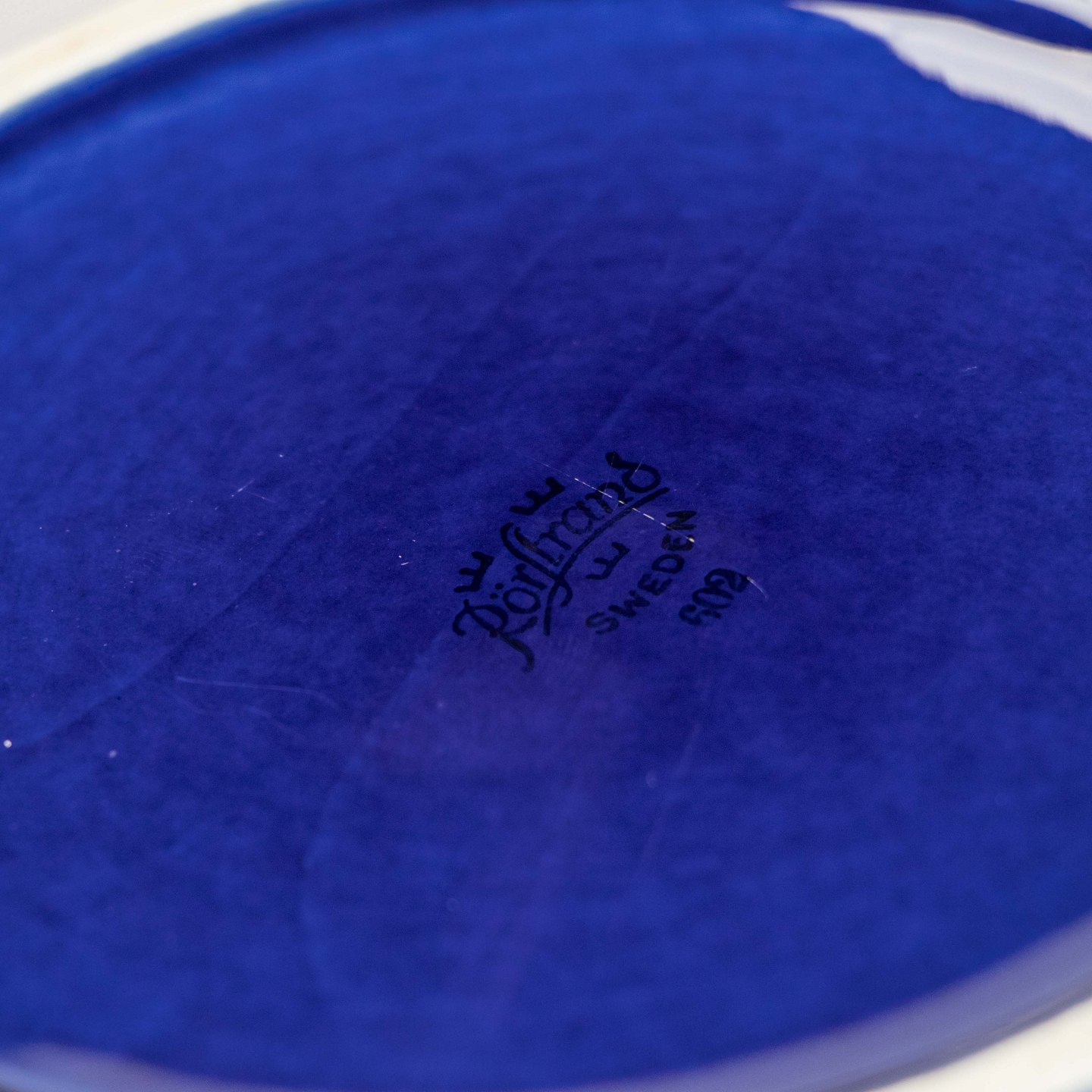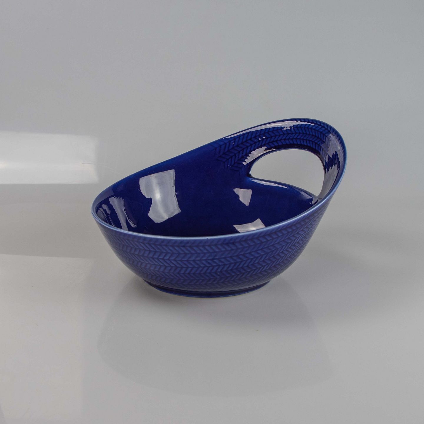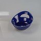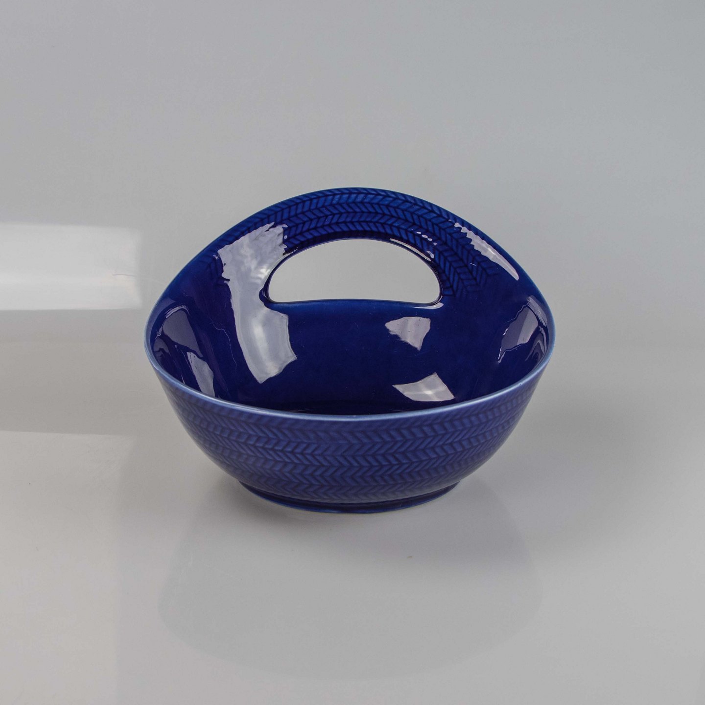 Skål fremstillet i blå fajance med indstøbt sildebensmønster.