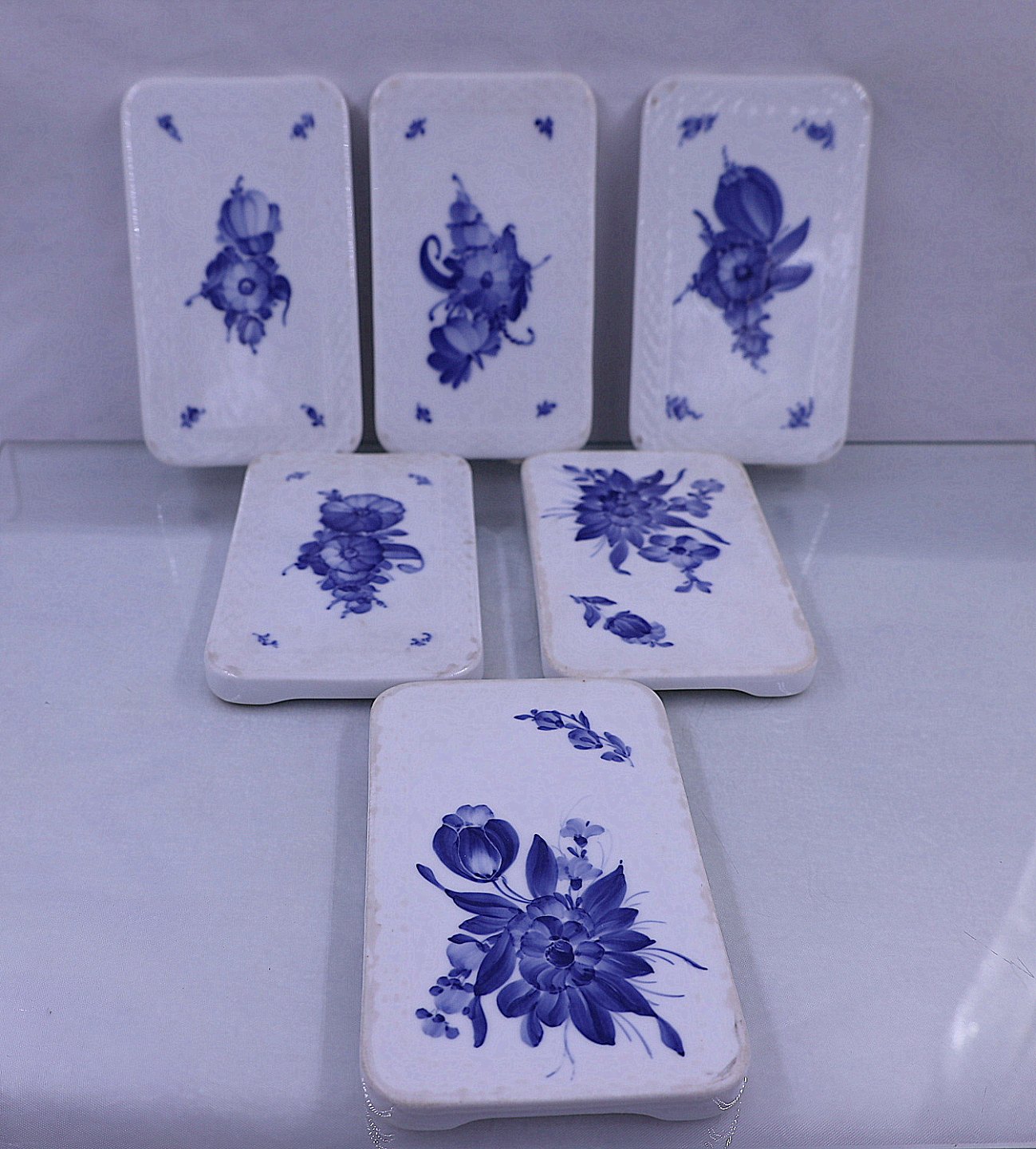Royal Copenhagen. Smørebræt/bordskåner, nr. 10/8170, blå blomst med flettet kant. Smørebræt/bordskåner er malet mellem 1910-1914