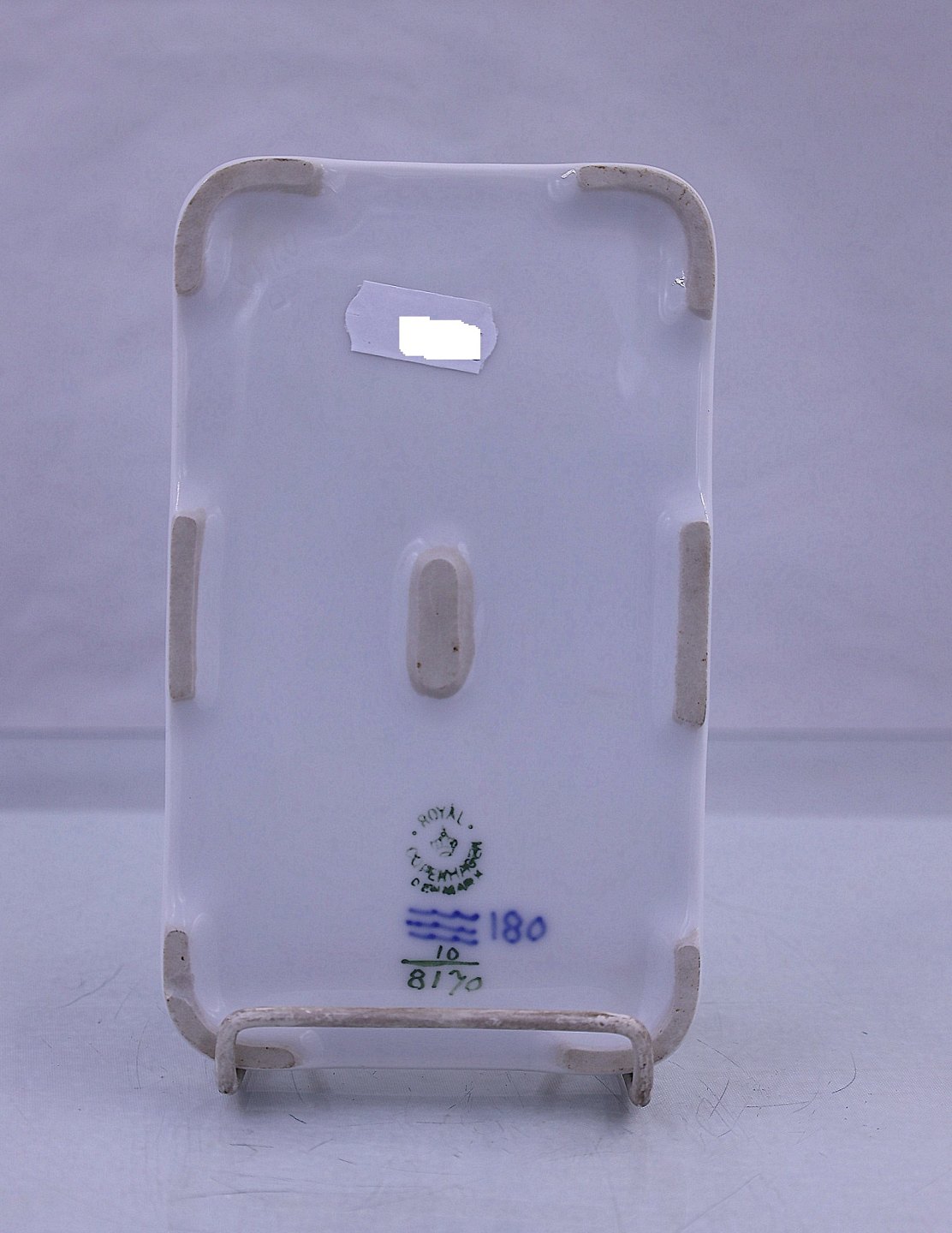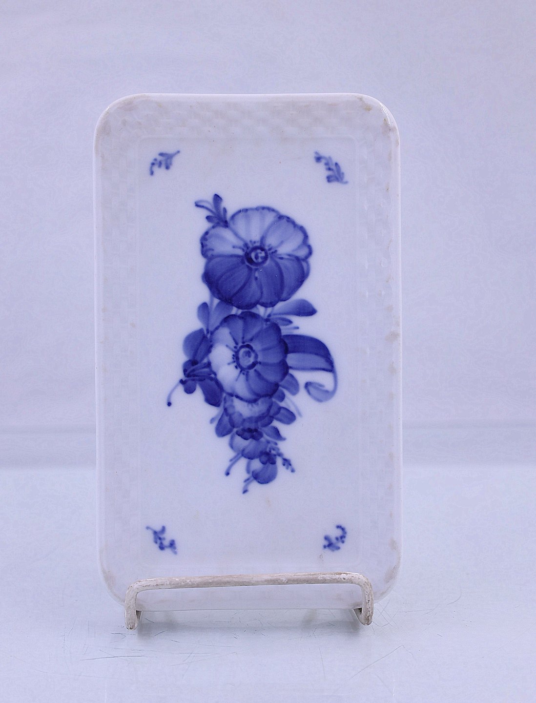 Royal Copenhagen. Smørebræt/bordskåner, nr. 10/8170, blå blomst med flettet kant. Smørebræt/bordskåner er malet mellem 1910-1914