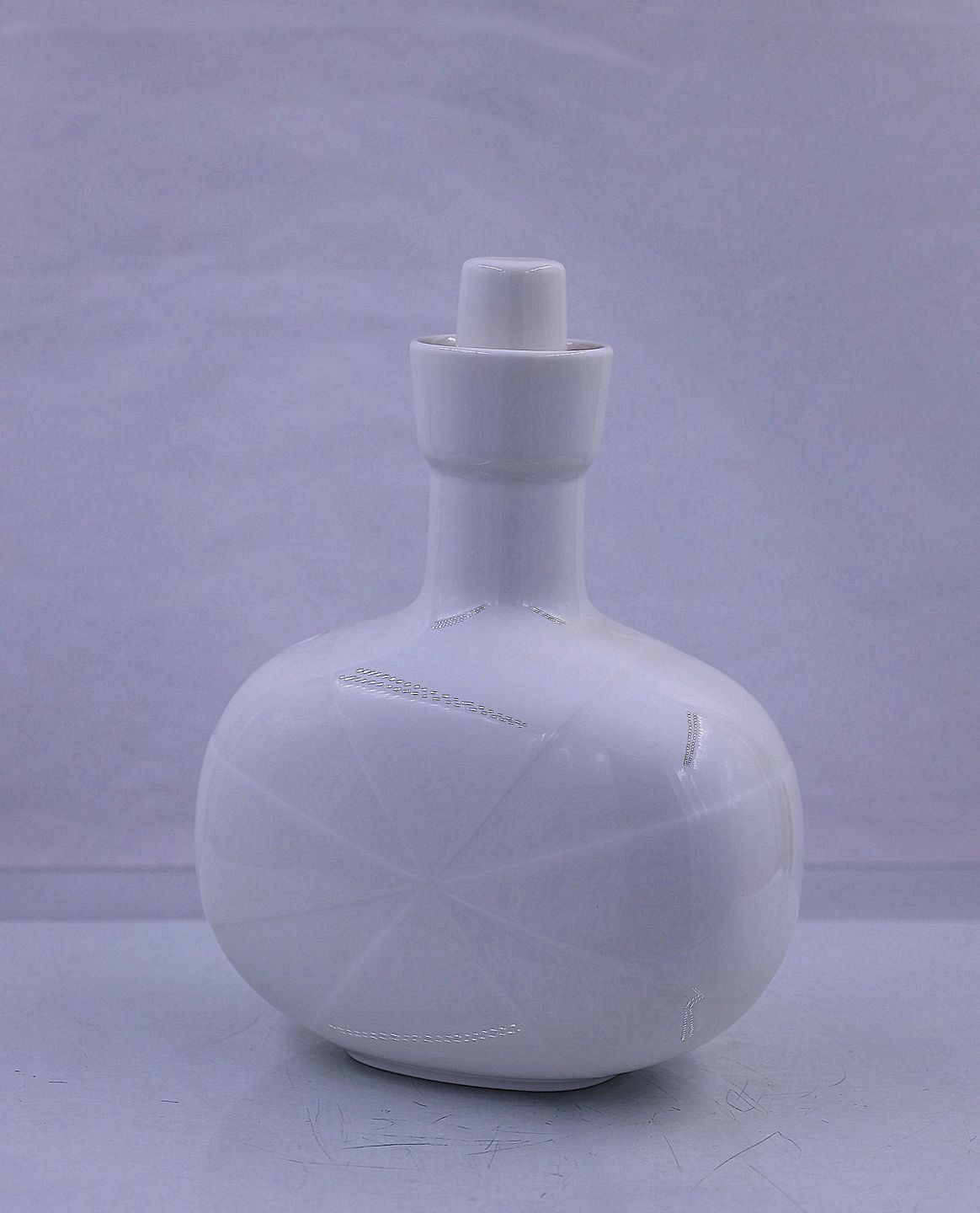 Royal Copenhagen, snapseflaske nr. 4601. Hvid flaske med CLOC præget på prop. Relief mønsteret på flasken er Malteserkors.