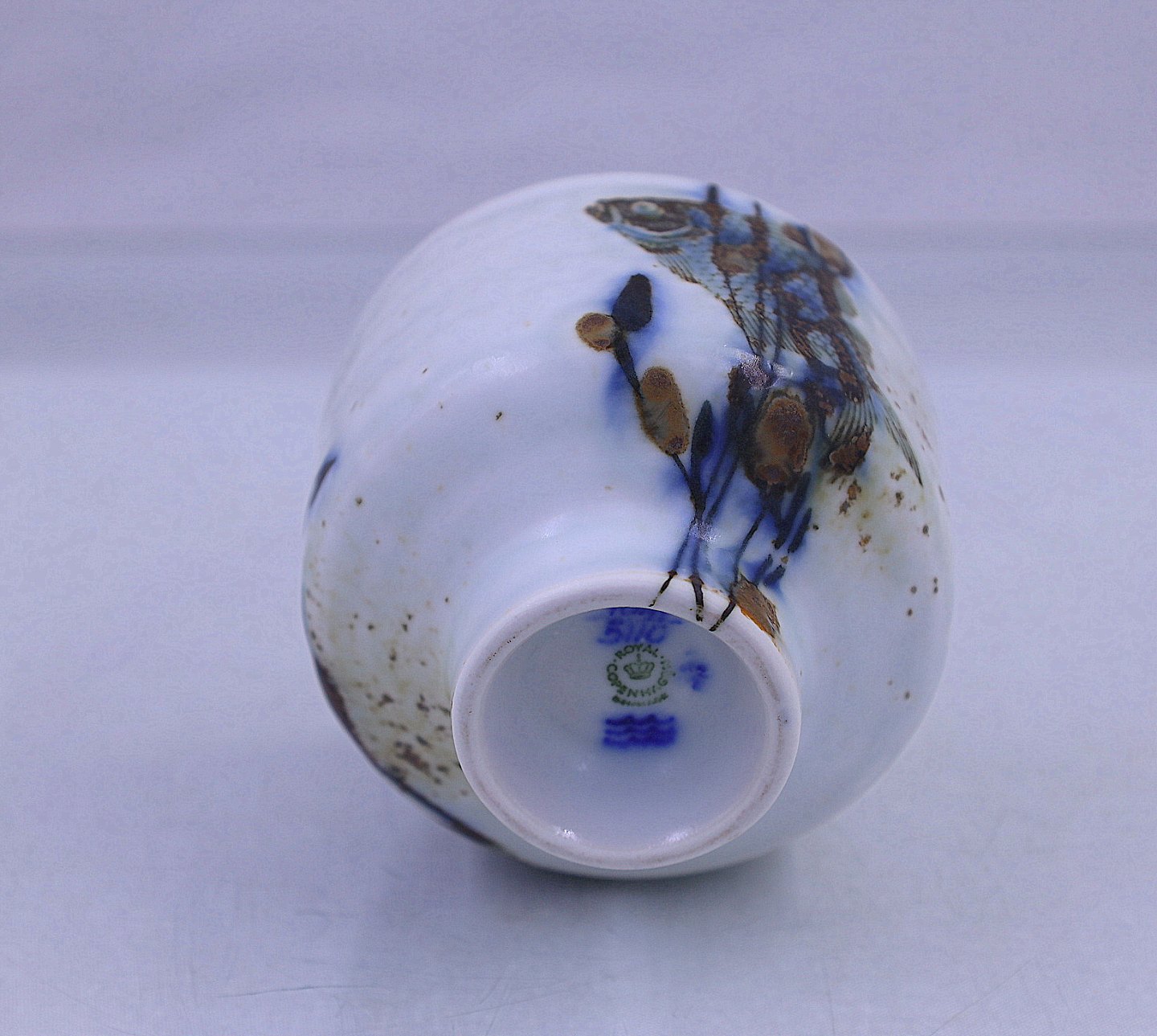Royal Copenhagen. Lille krukke på fod, nr. 1041/5110. Krukken er fra serien Diane fra 1970èrne. Nils Thorsson udviklede den matte glasur, så mønsteret kom mere i fokus