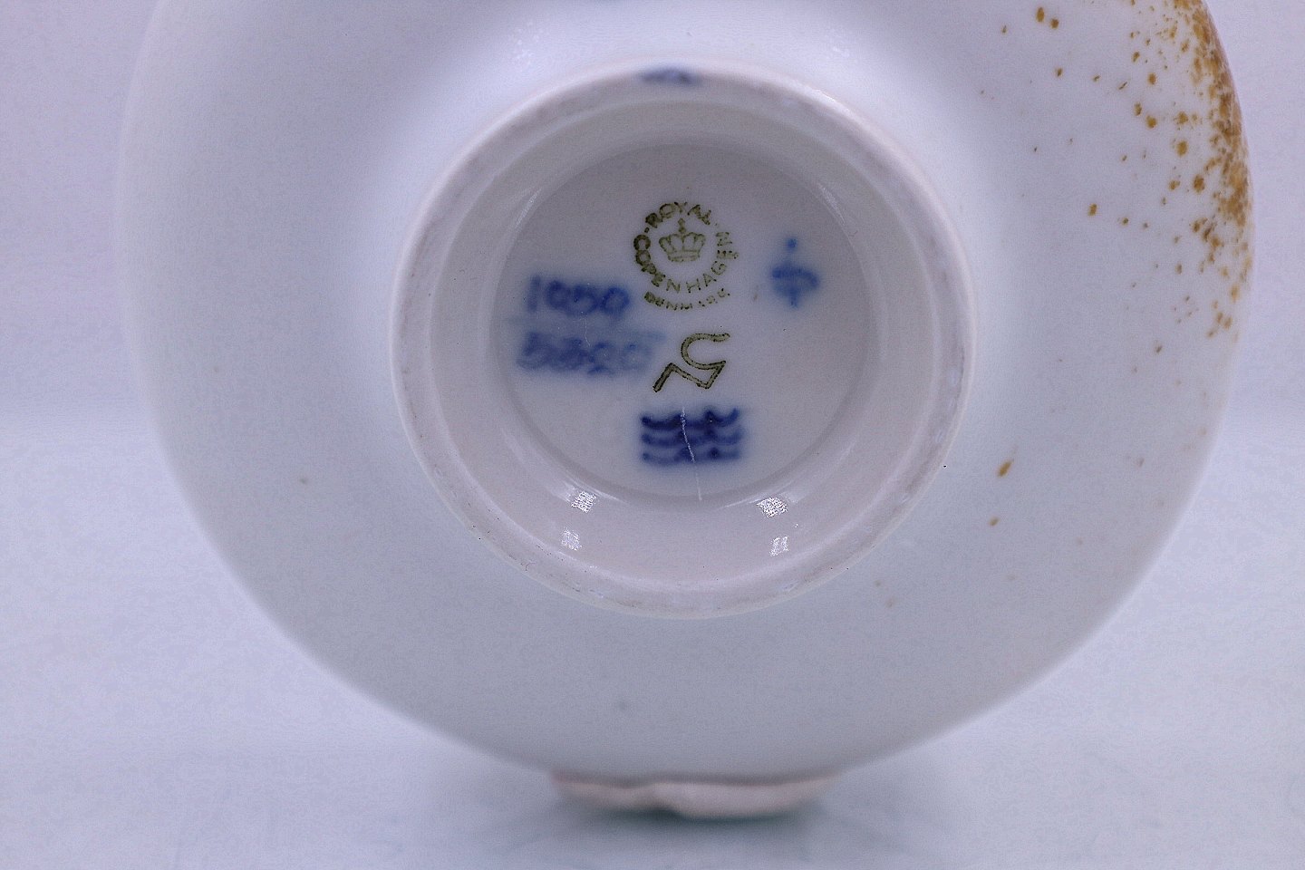 Royal Copenhagen. Lille skål på fod, nr. 1050/5320. Skålen er fra serien Diane fra 1970èrne. Nils Thorsson udviklede den matte glasur, så mønsteret kom mere i fokus