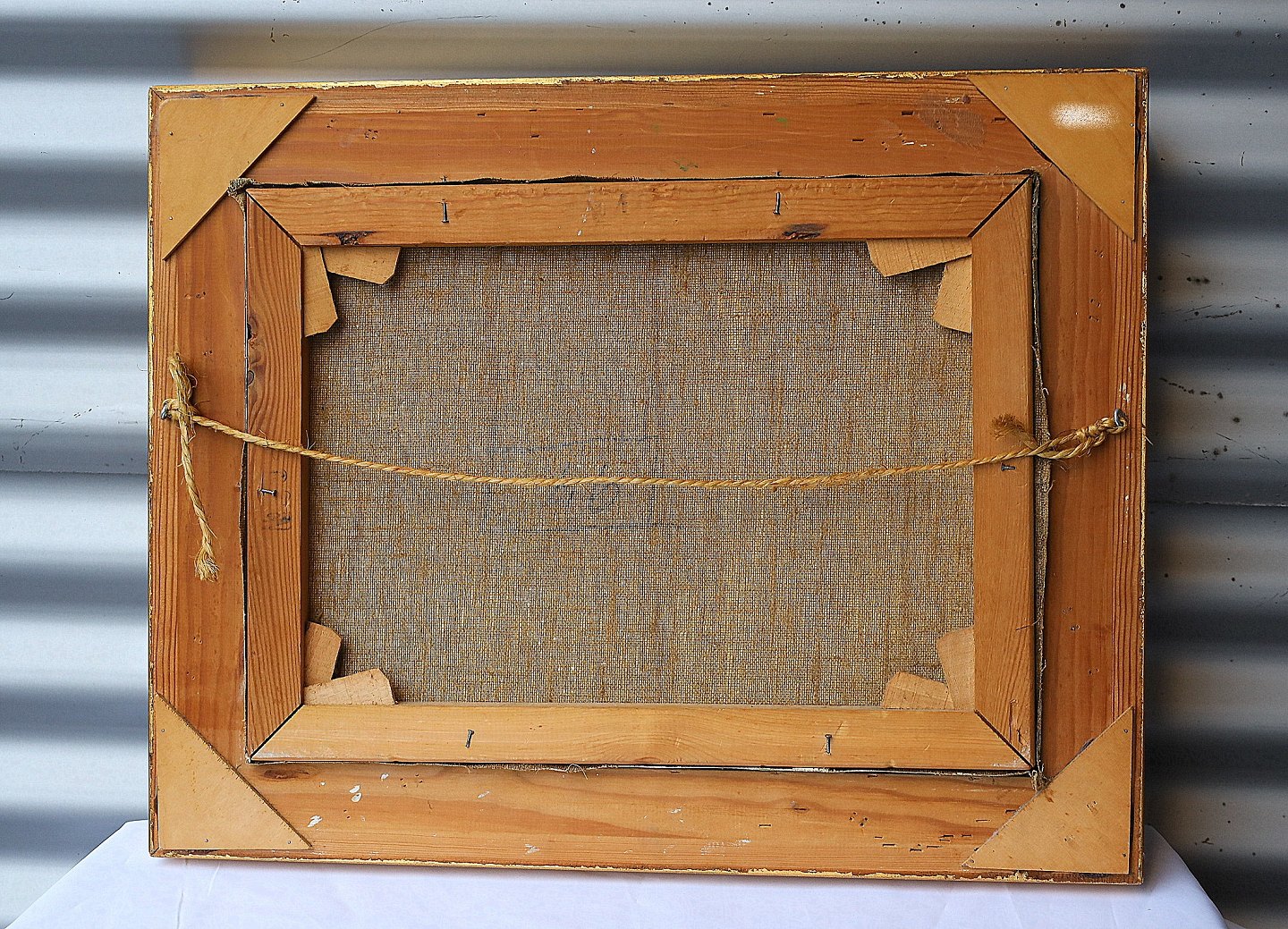 Maleri, Axel Hansen (1896-1936). Landmandskone, der tager sig af 3 køer. Der er nogle høns der går i en dynge hø. Maleriet er i guldramme, rammen har enkelte brugsspor.
