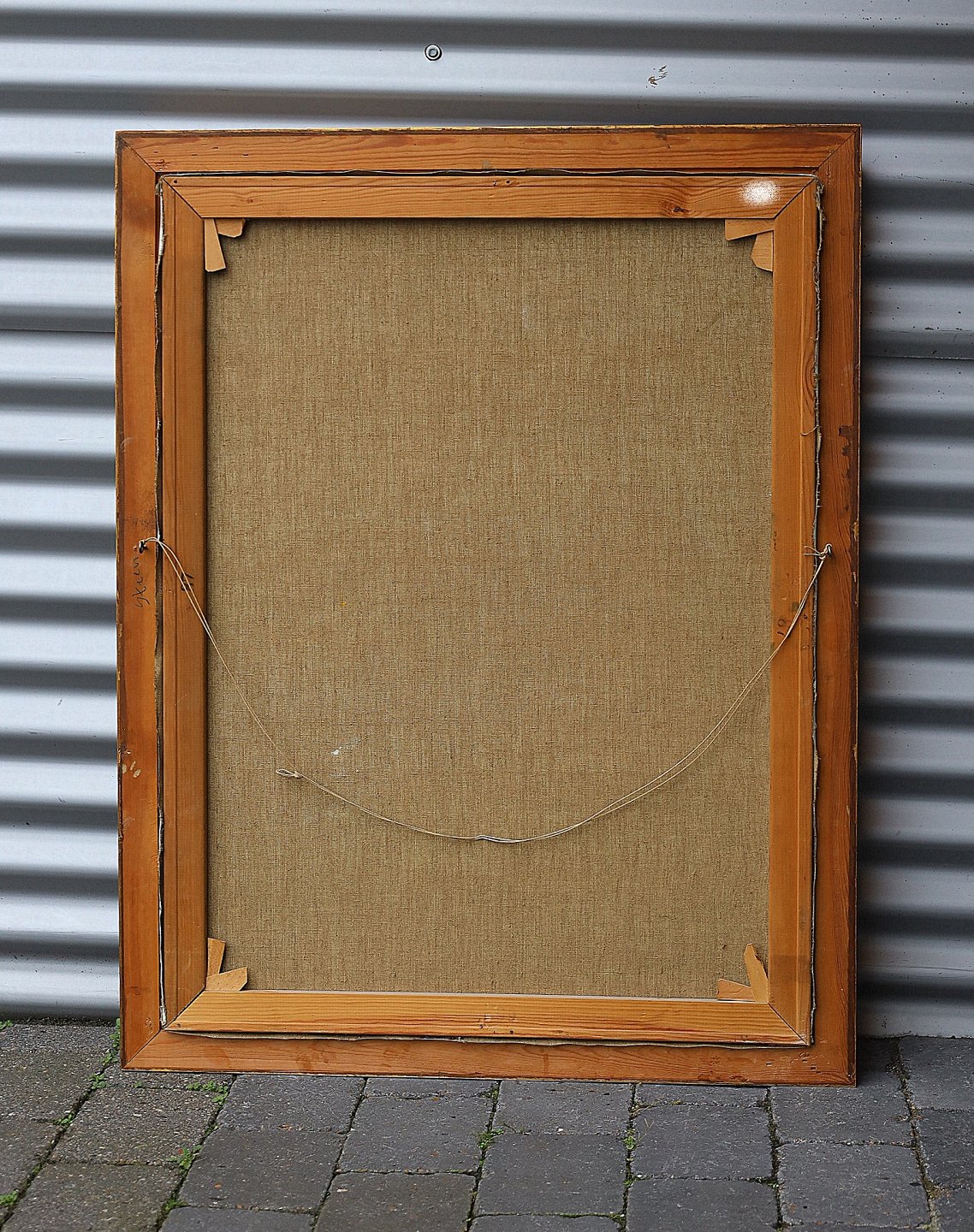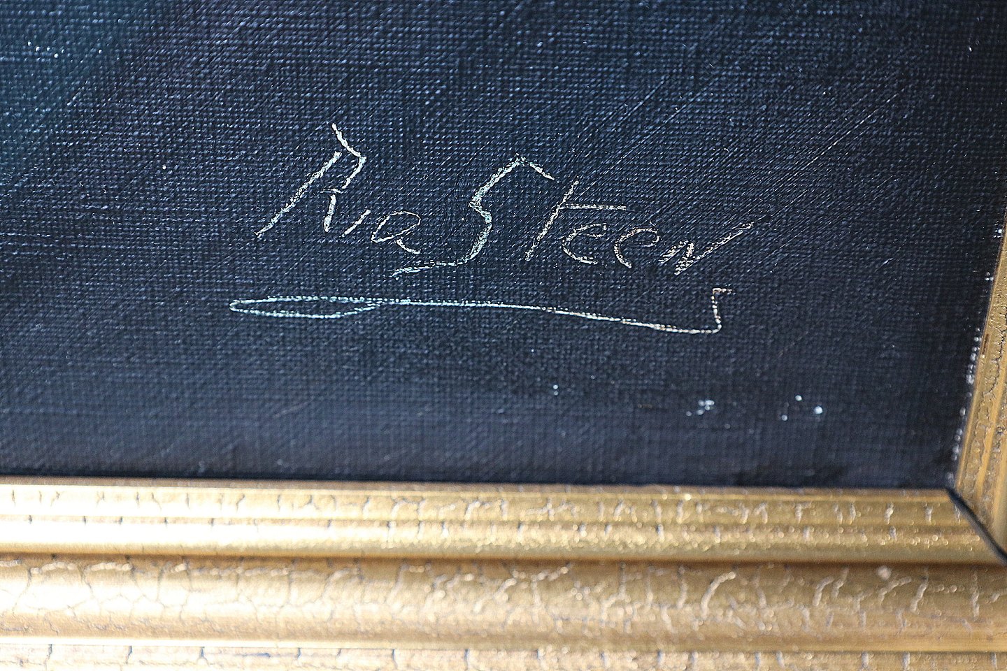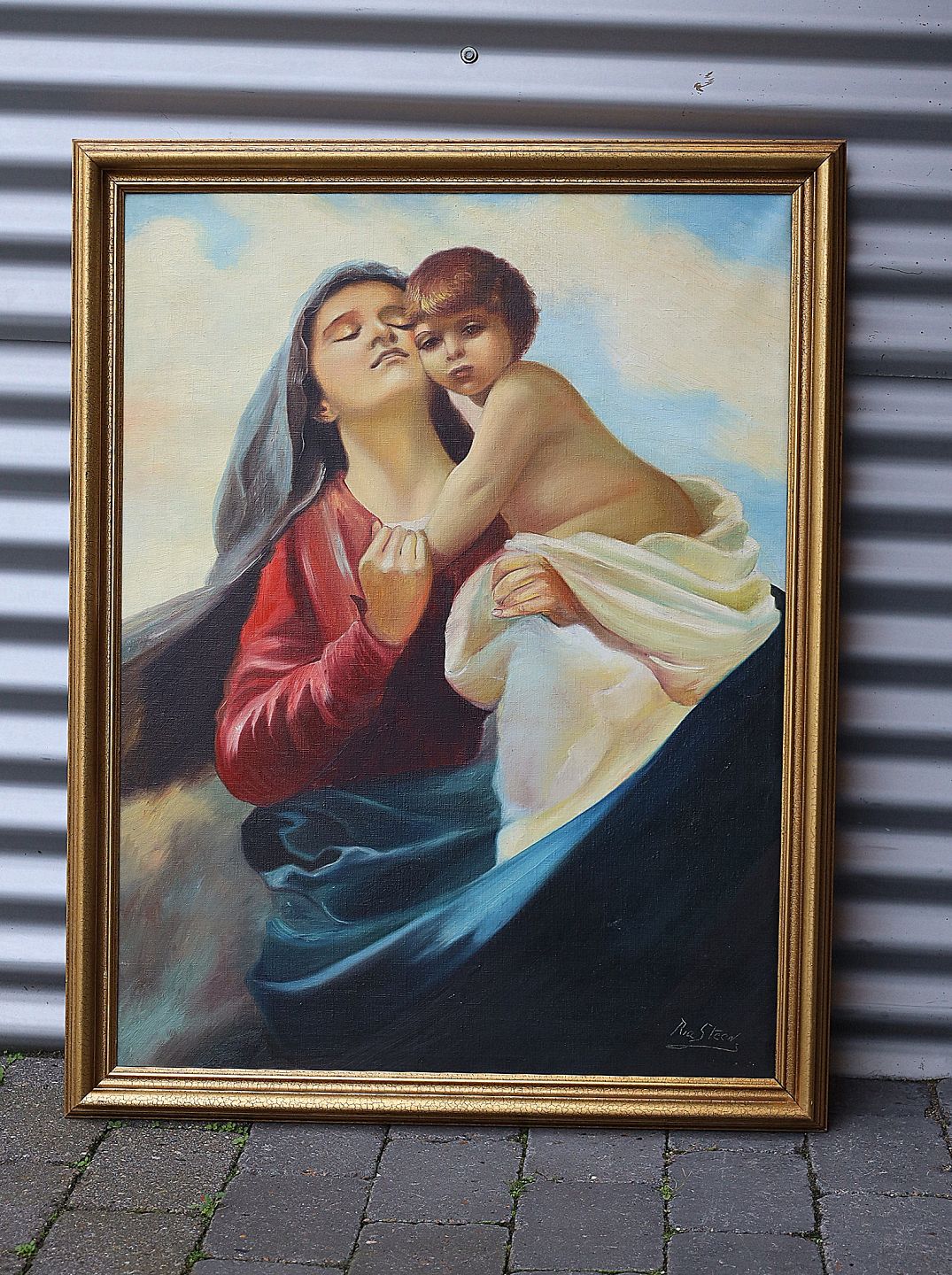 Maleri, Ria Steen, født 1939-. "Madonna med barn". Ria Steen er annerkendt som religiøs malerinde. Maleriet er i krakeleret guldramme.