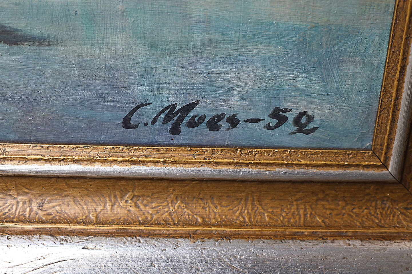 Signeret C. Moes -52. Maleriet er i guldramme med sølv.