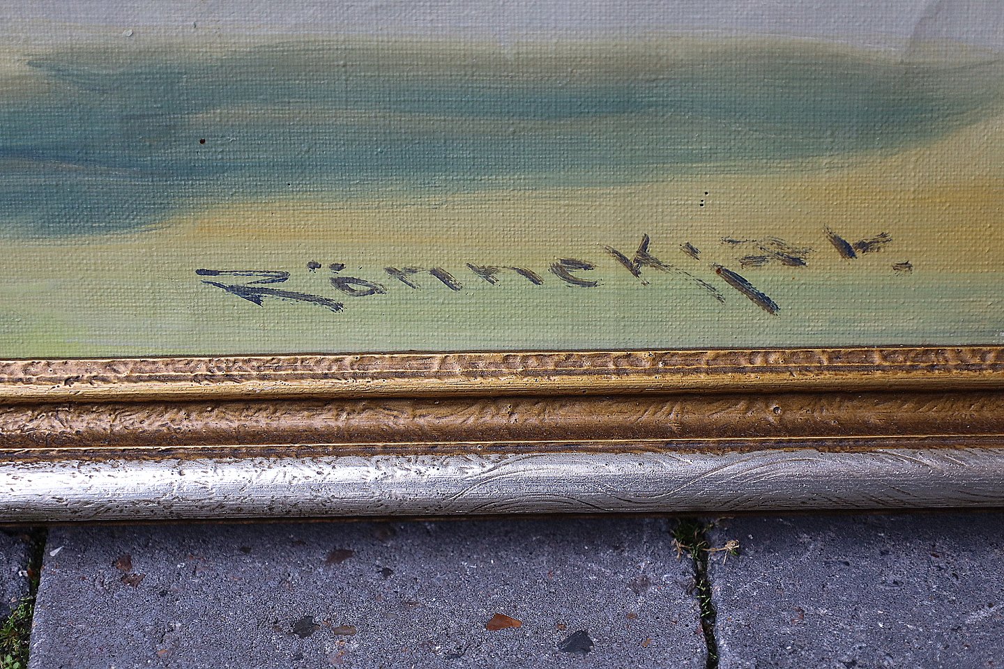 Maleri, Hans Rønnekjær. Stilleben, markbuket i vase. Maleriet er signeret Rønnekjær. Rammen er sølv/guld