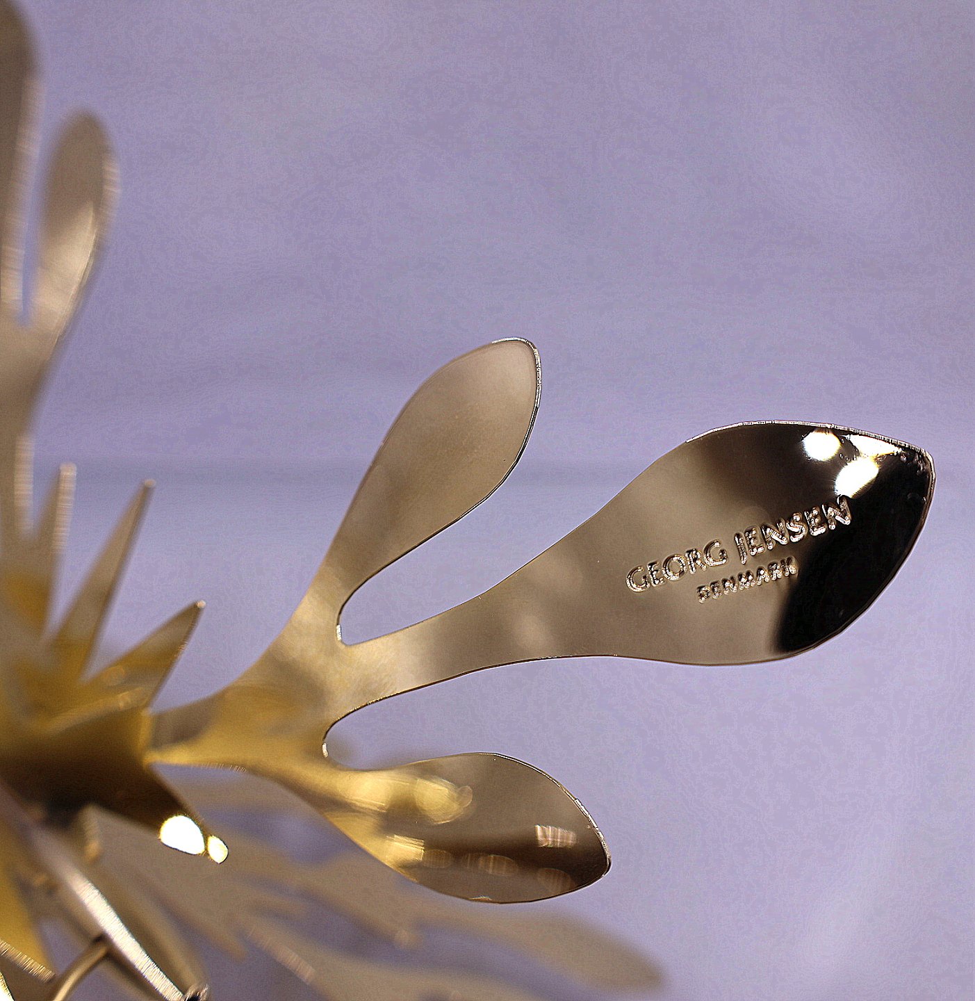 Georg Jensen. Kronblad topstjerne 2016, topstjernen kan både sættes på toppen af juletræet eller hænge. Kronblad topstjernen er stor størrelse. Topstjernen er messing belagt med 18 karat guld, og kommer i original æske, der er også et rødt ubrugt bånd med, der følger juletræs holder med.