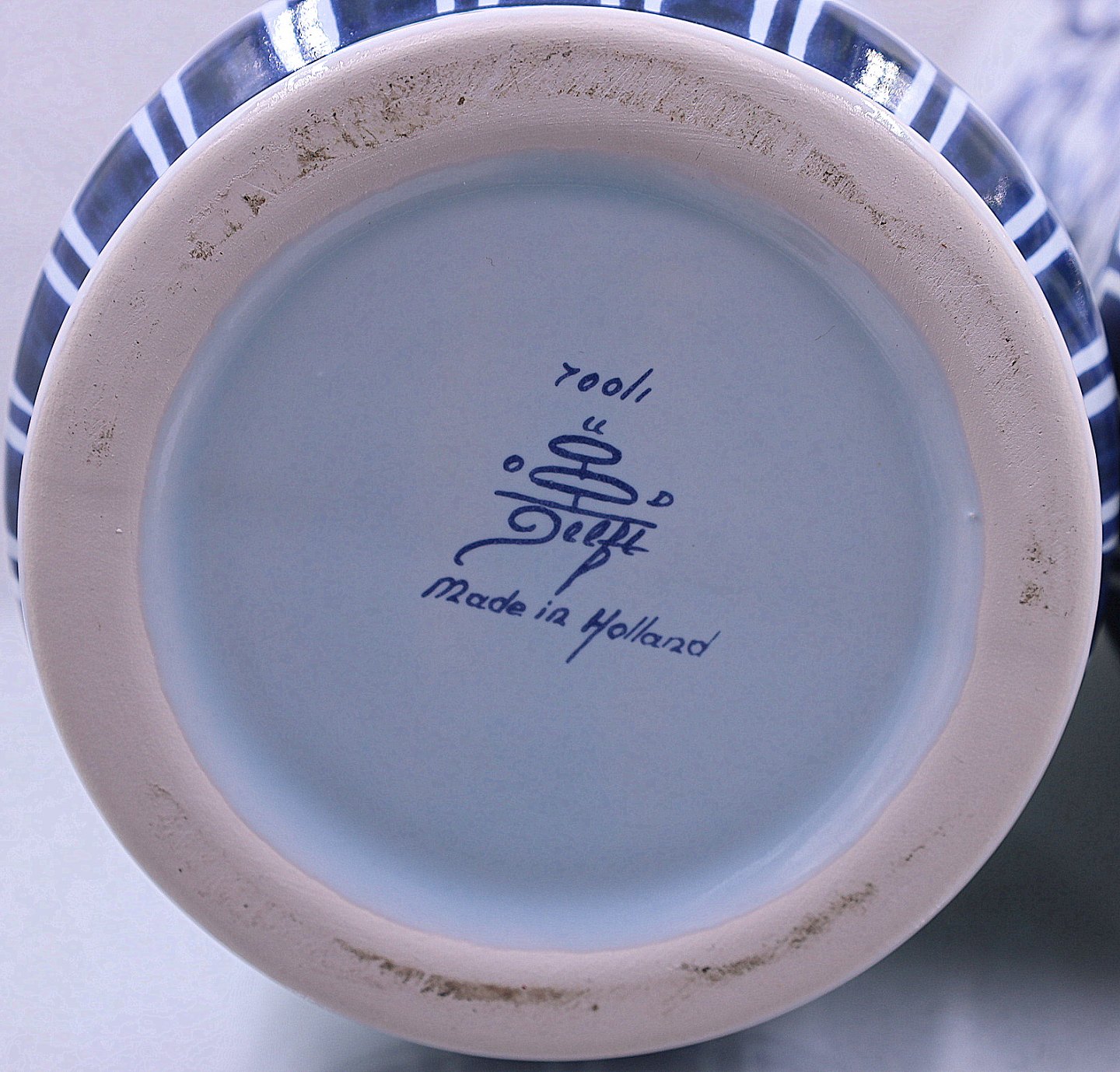 Delft apotekerkrukker, nr 700/1 og 700/2. Hollandske apotekerkrukker fra Delft, krukkerne er med låg. Delfterfajance, hollandsk fajance, fremstillet i byen Delft. Fra 1500-tallet blev der produceret fajance i Holland, og værkstederne i Delft var førende fra midten af 1600-tallet til ca. 1725.