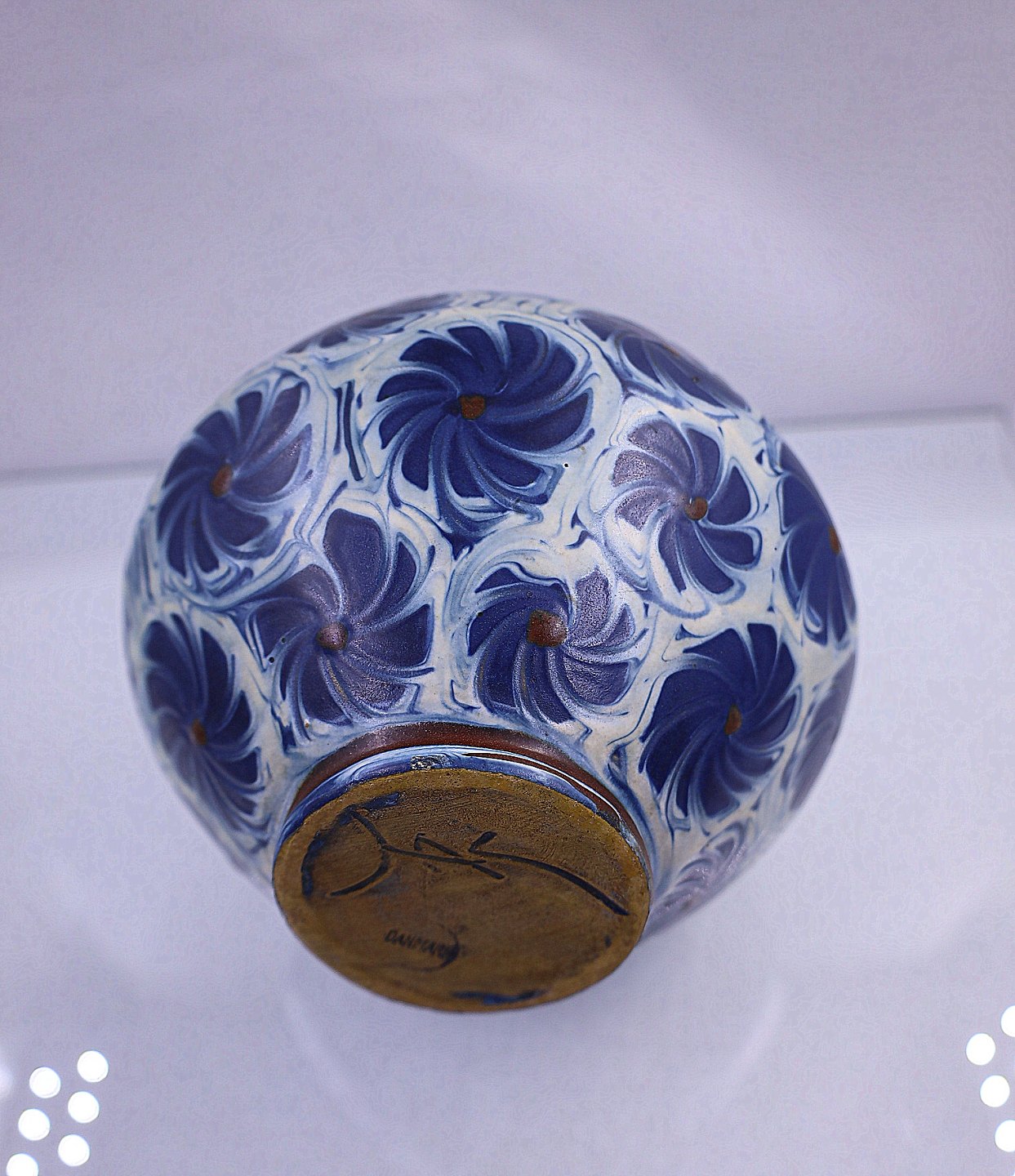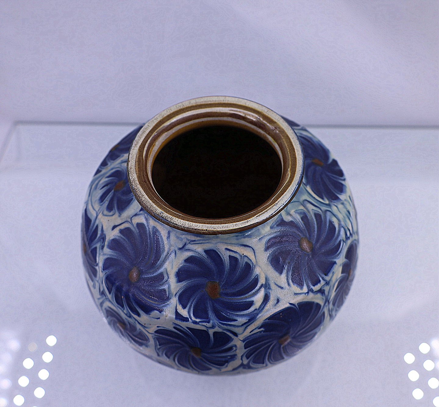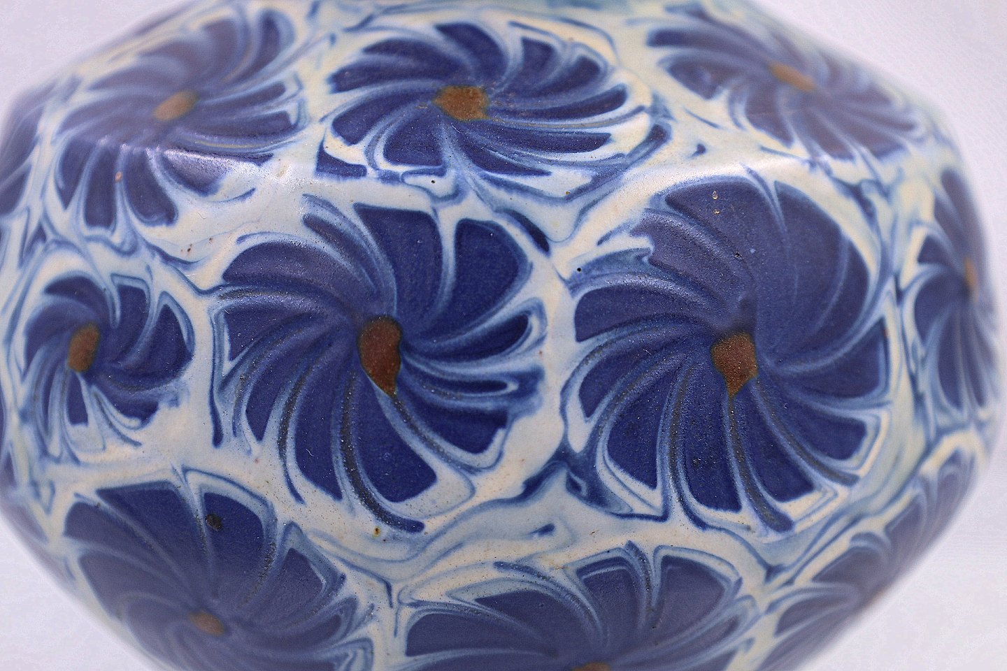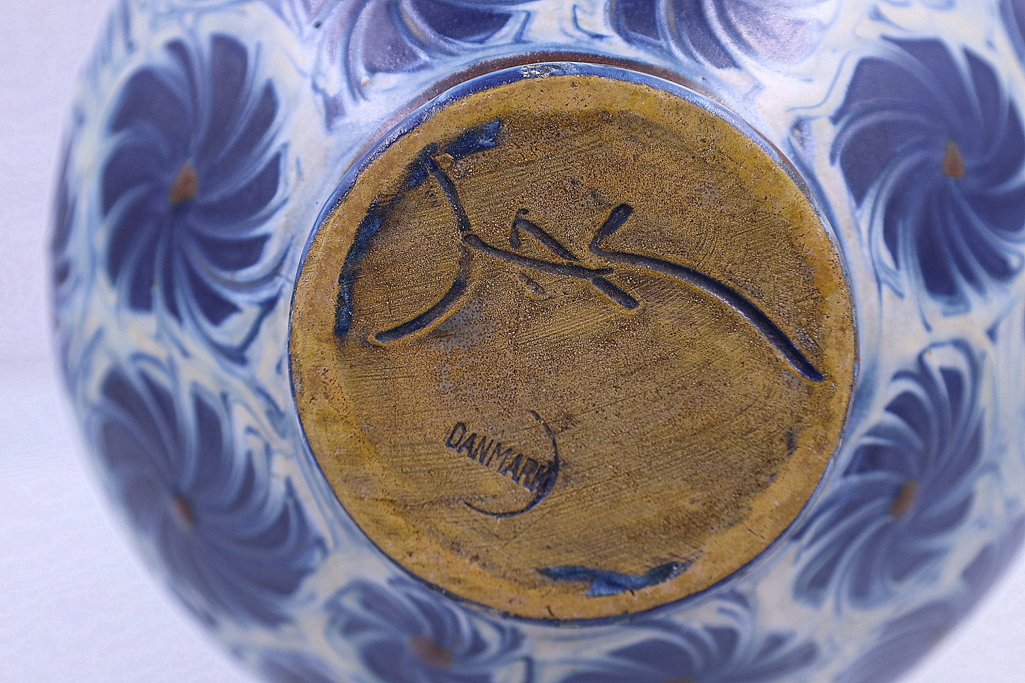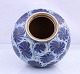 Herman A. Kähler. Buttet lertøjs vase, dekoreret med blå blomster
