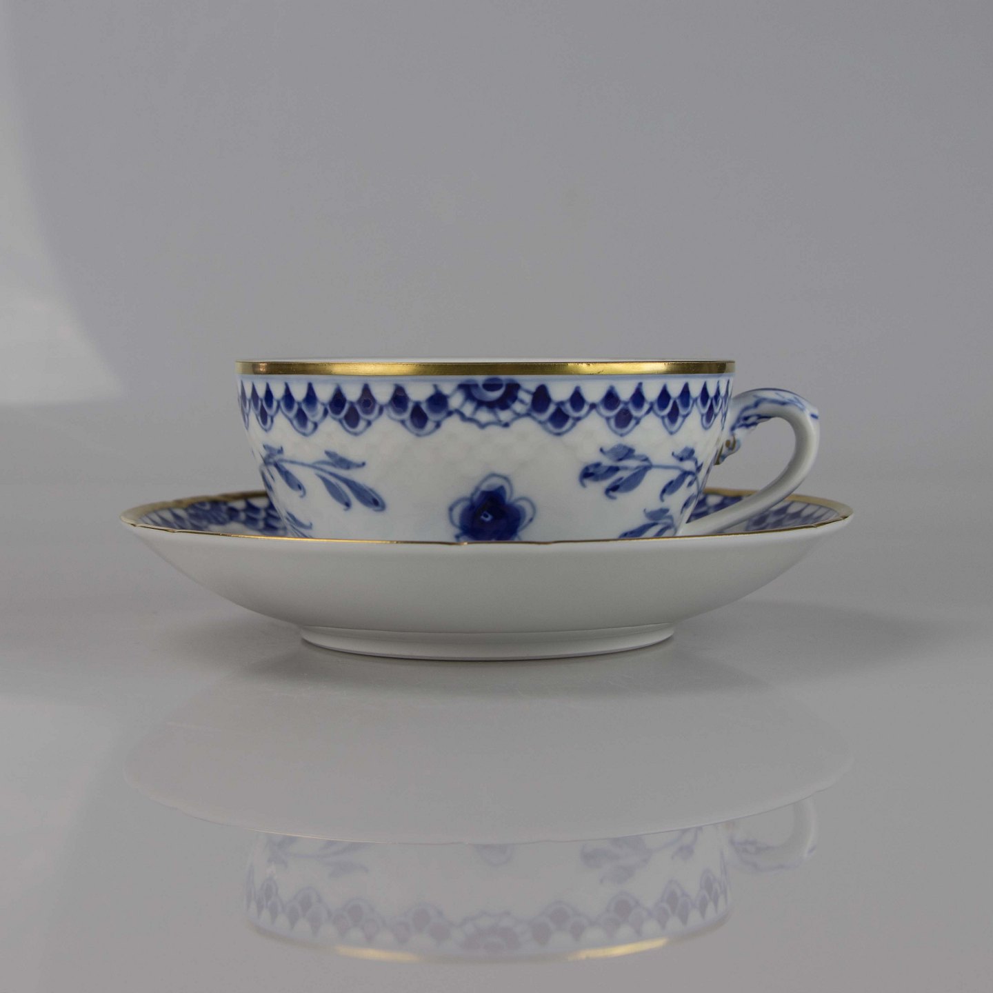 Tekop med underkop fra stellet Dickens Sommerfugl med guldkant nr. 473