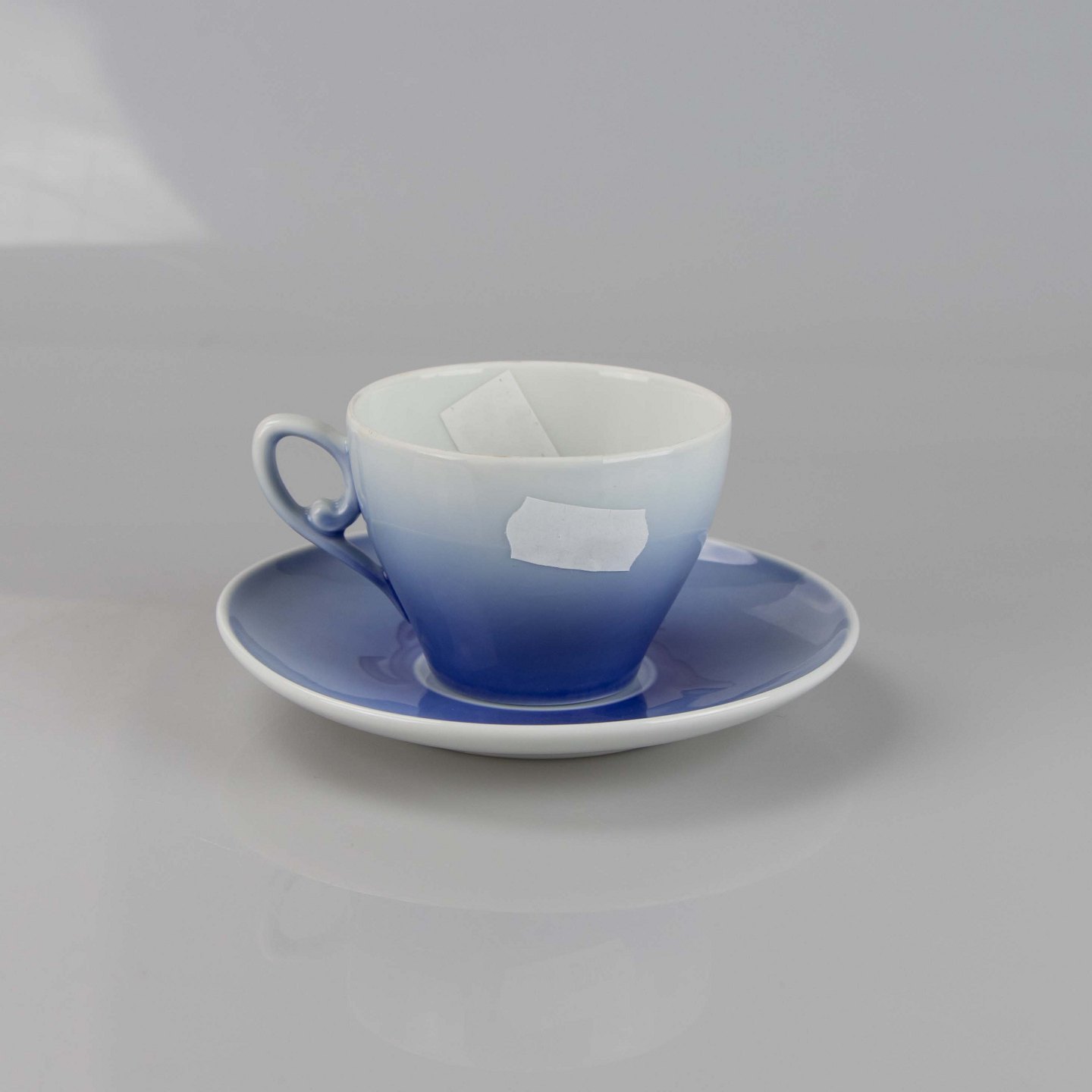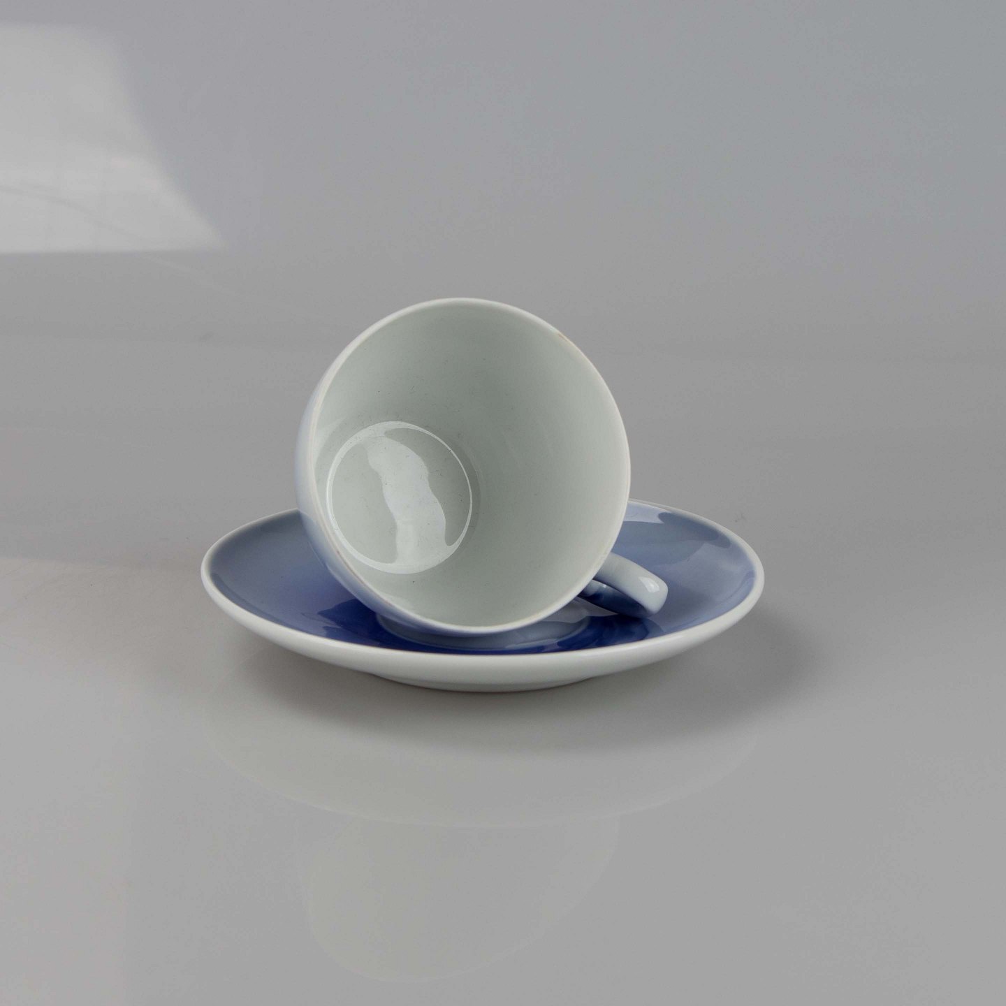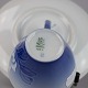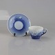 Kop i hvidt og gradueret blå porcelæn med motiv af julerose.