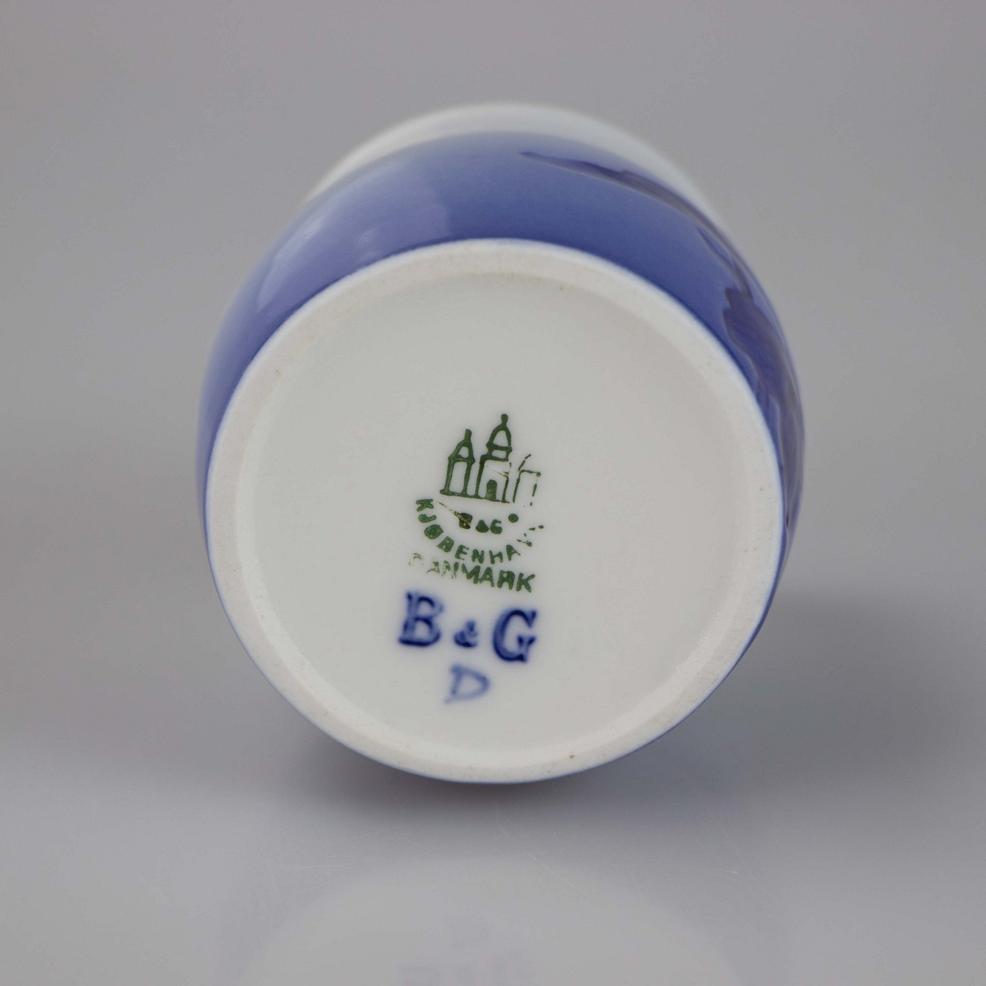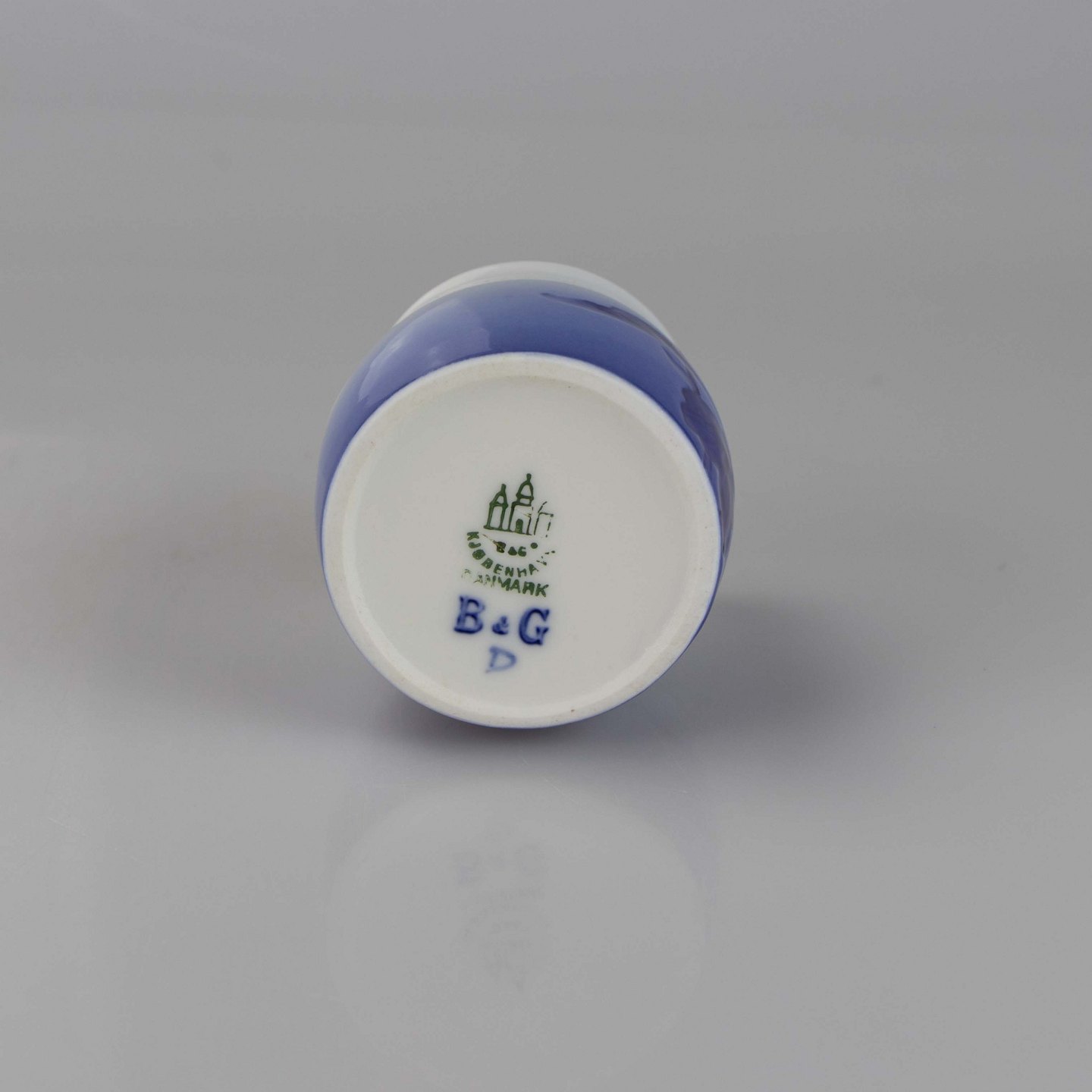 Holder i hvidt og gradueret blå porcelæn med motiv af julerose.