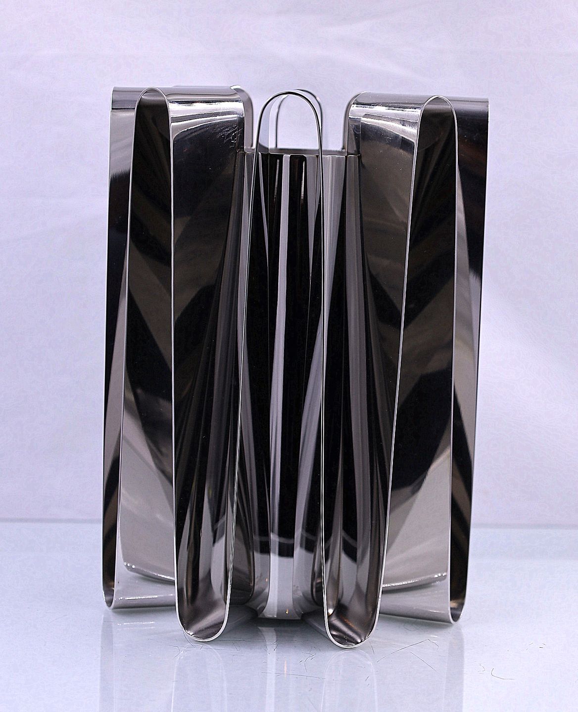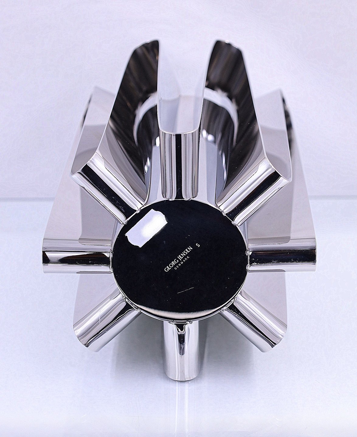 Georg Jensen. Stor vase i Frequency kollektionen udført i glaspoleret rustfrit stål, der er valset i 8 smukt bølgende bånd. Design år 2018, lanceret 2019. Vasen er uden ridser og andre brugsspor