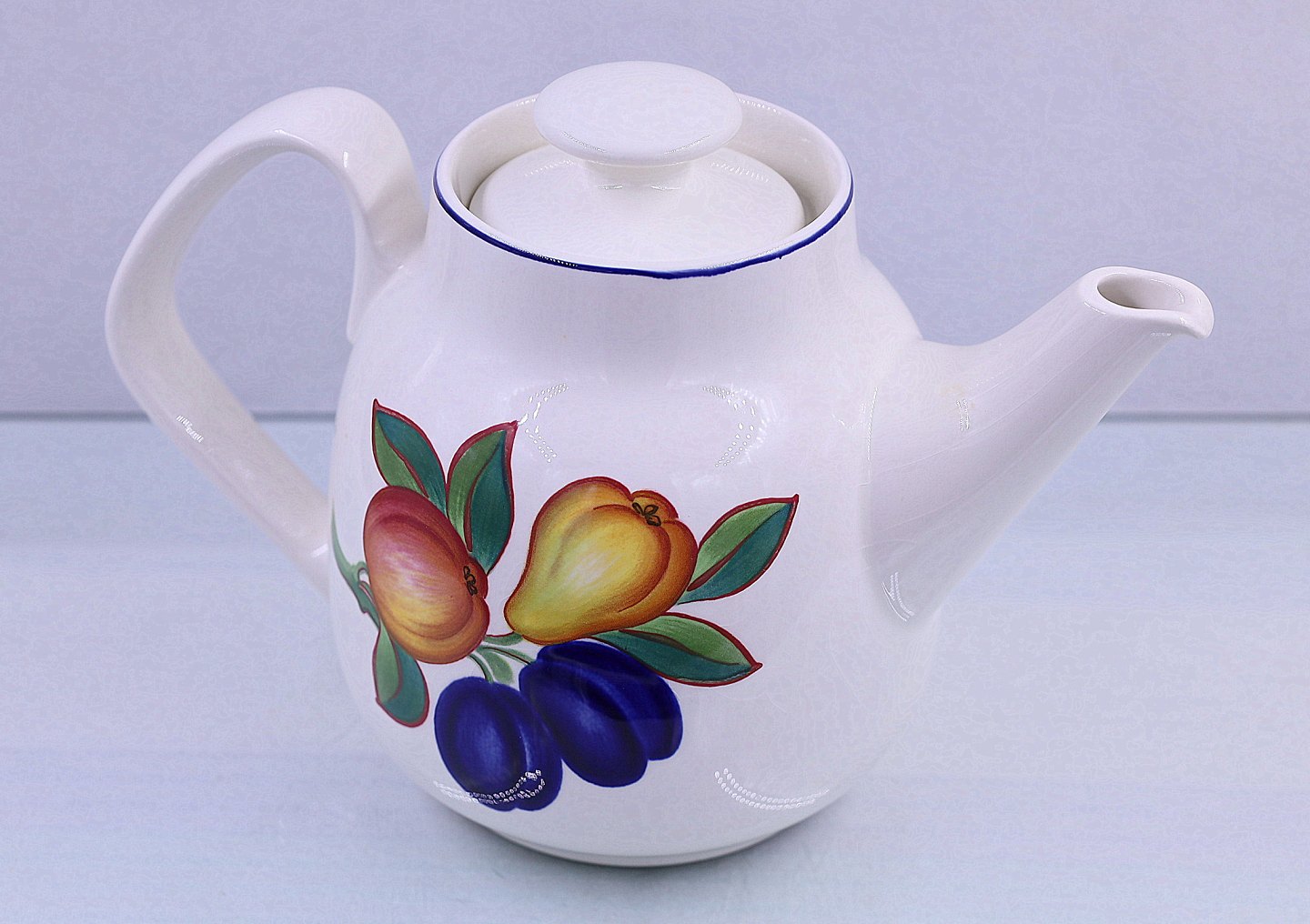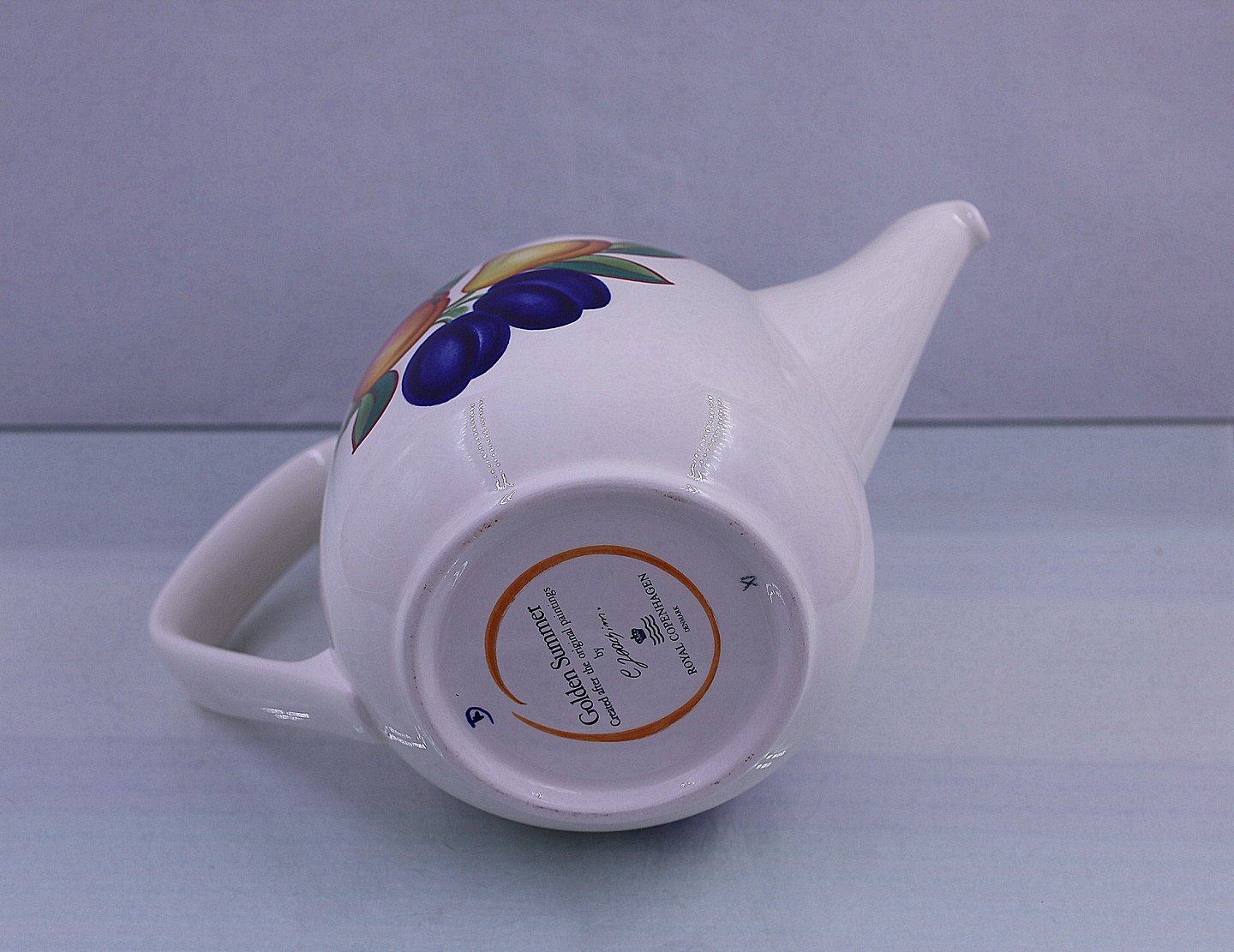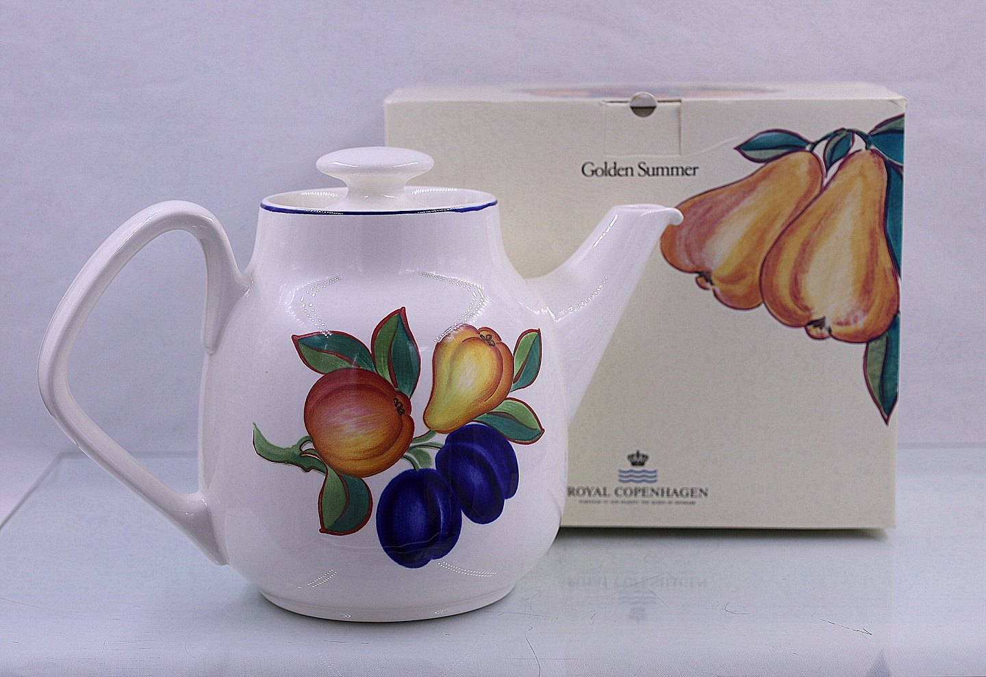 Royal Copenhagen. Gylden Sommer kaffekande med låg, fajance.