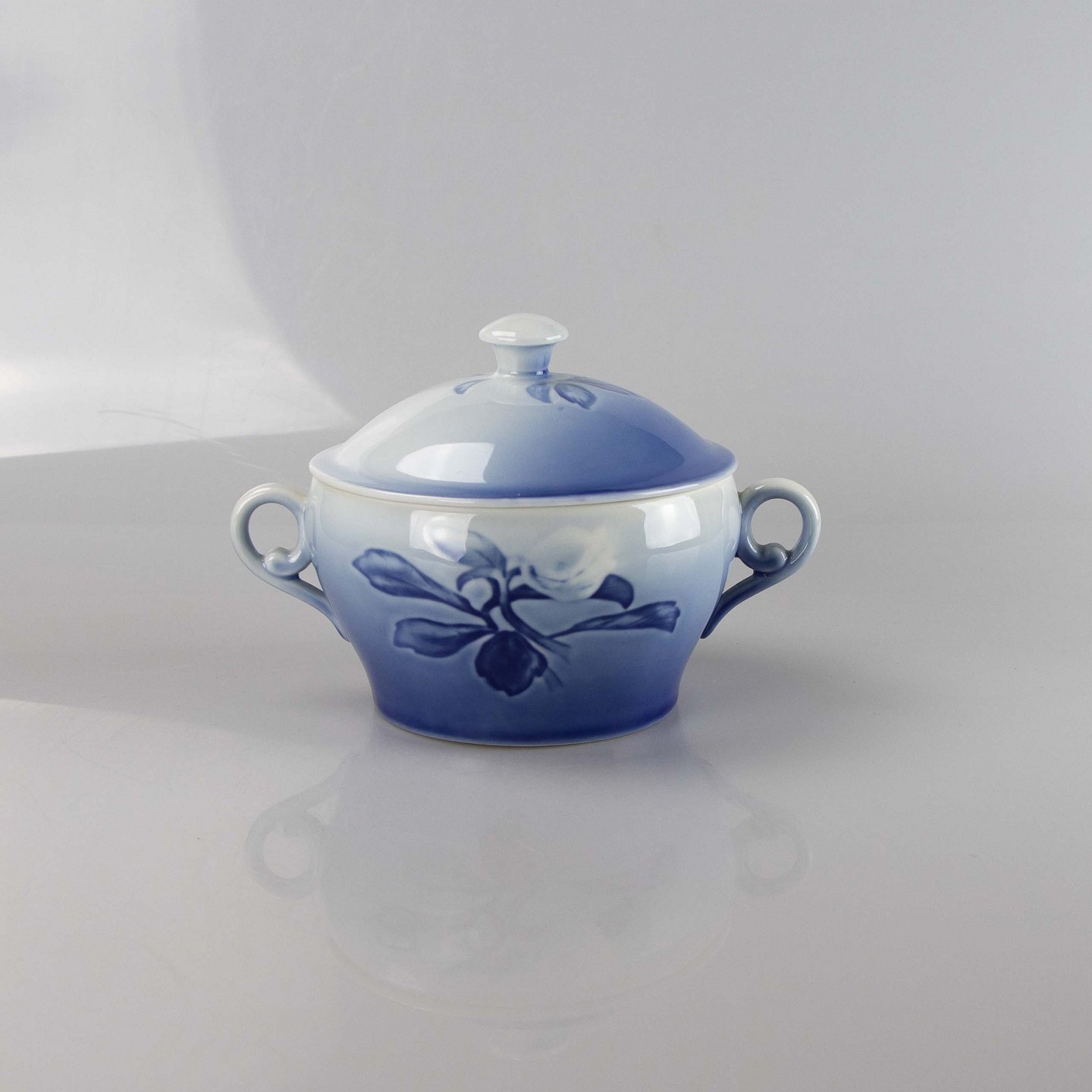 Sukkerskål med låg og hanke fra stellet Julerose nr. 302