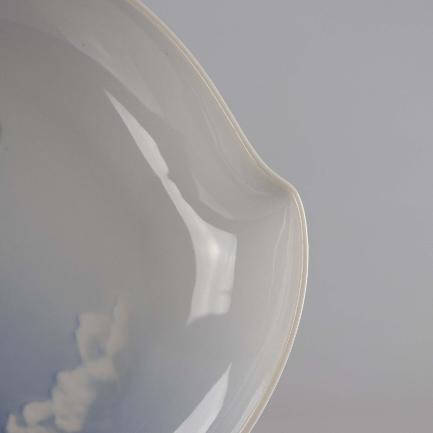 Asiet i hvidt og gradueret blå porcelæn med motiv af julerose.