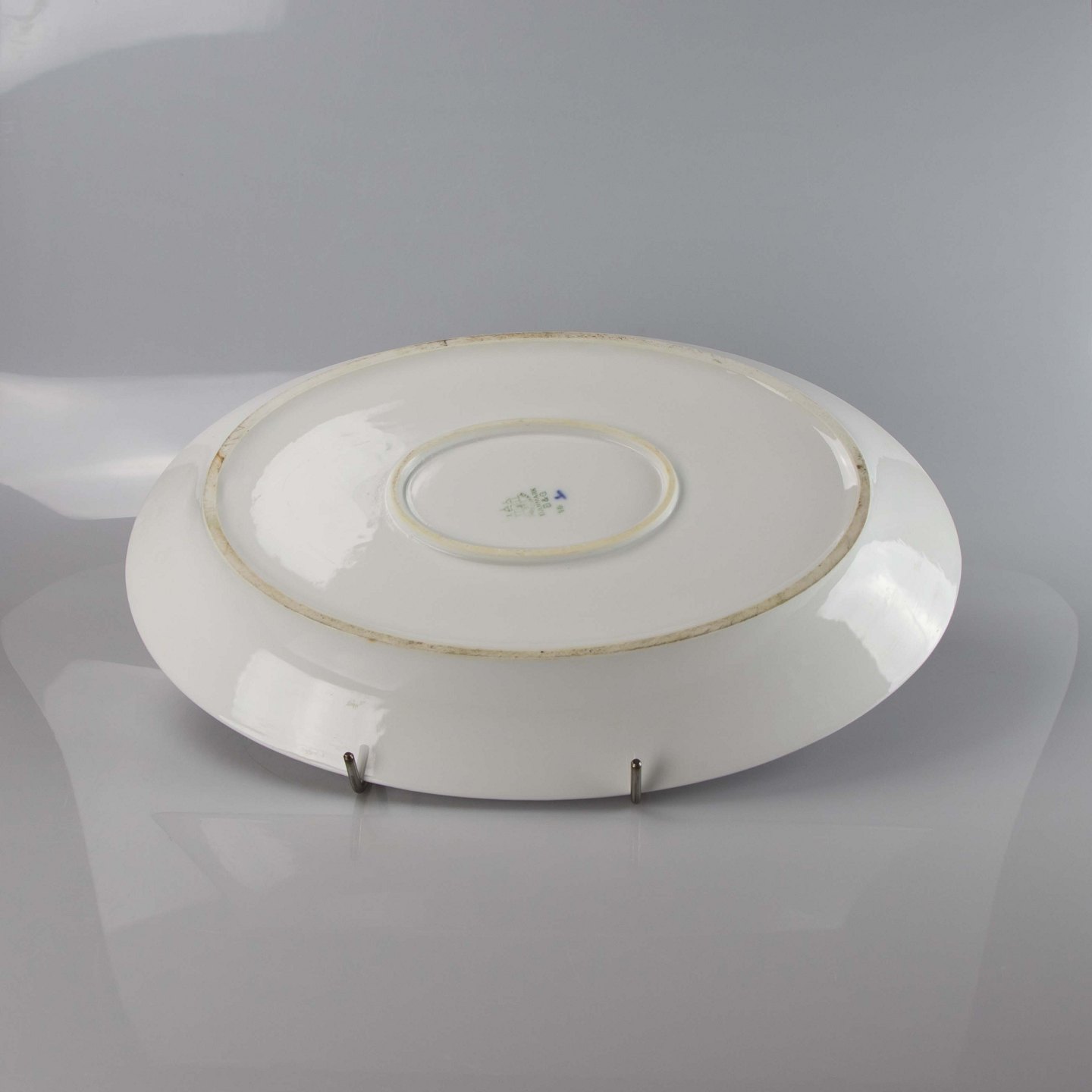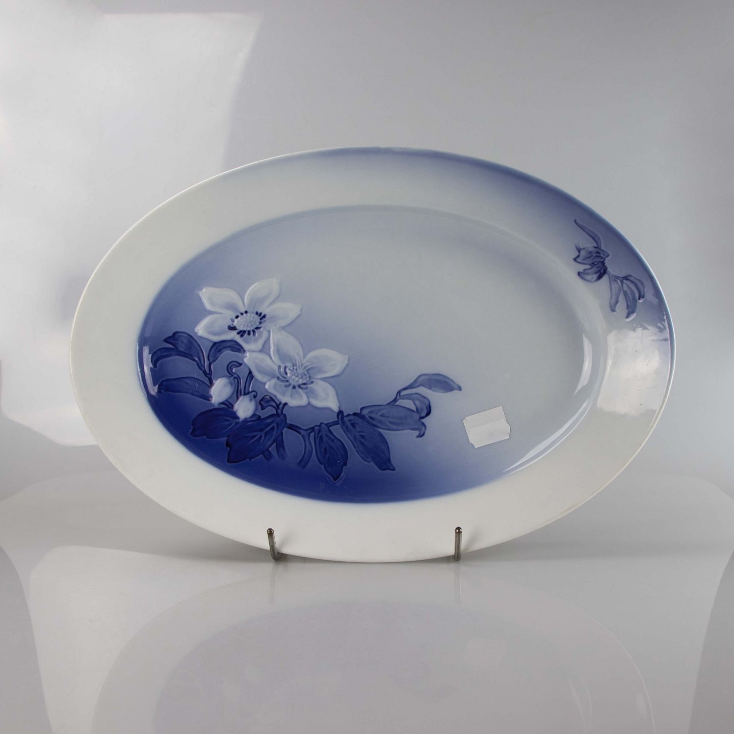 Serveringsfad i hvidt og gradueret blå porcelæn med motiv af julerose.