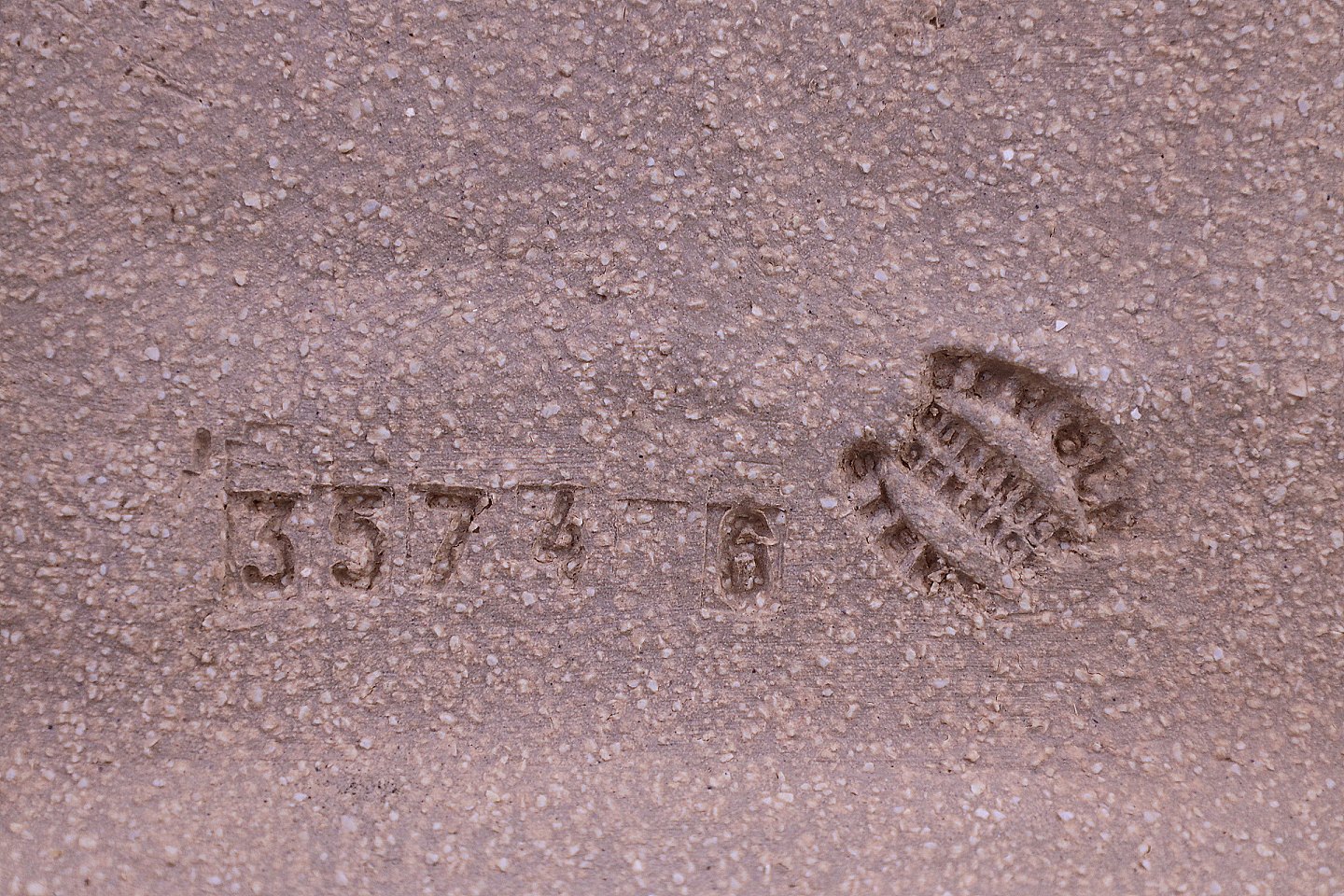 Søholm Keramik. Relief, nr. 3574-6. 2 brune fantasi fugle med bladformede motiver nedenunder.
