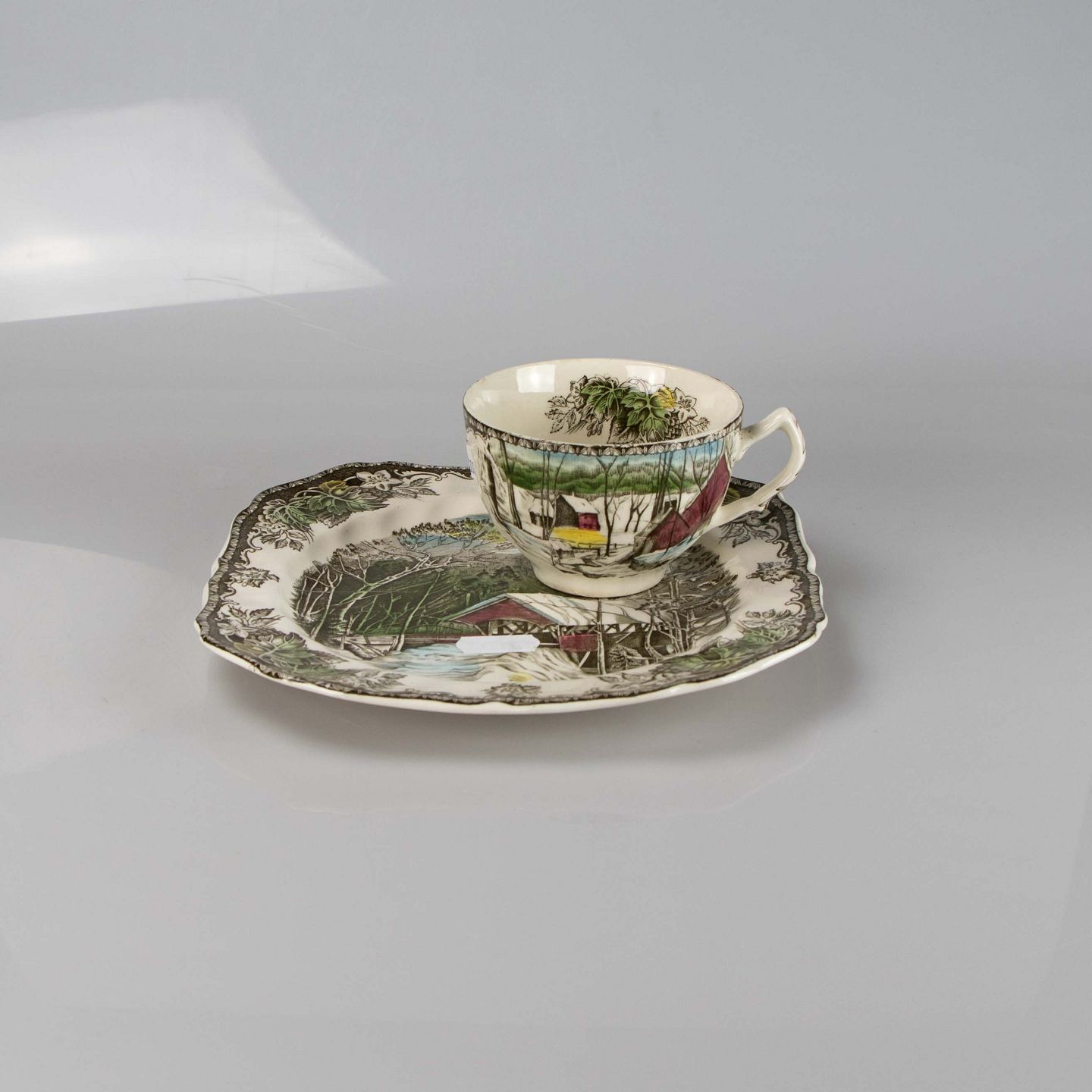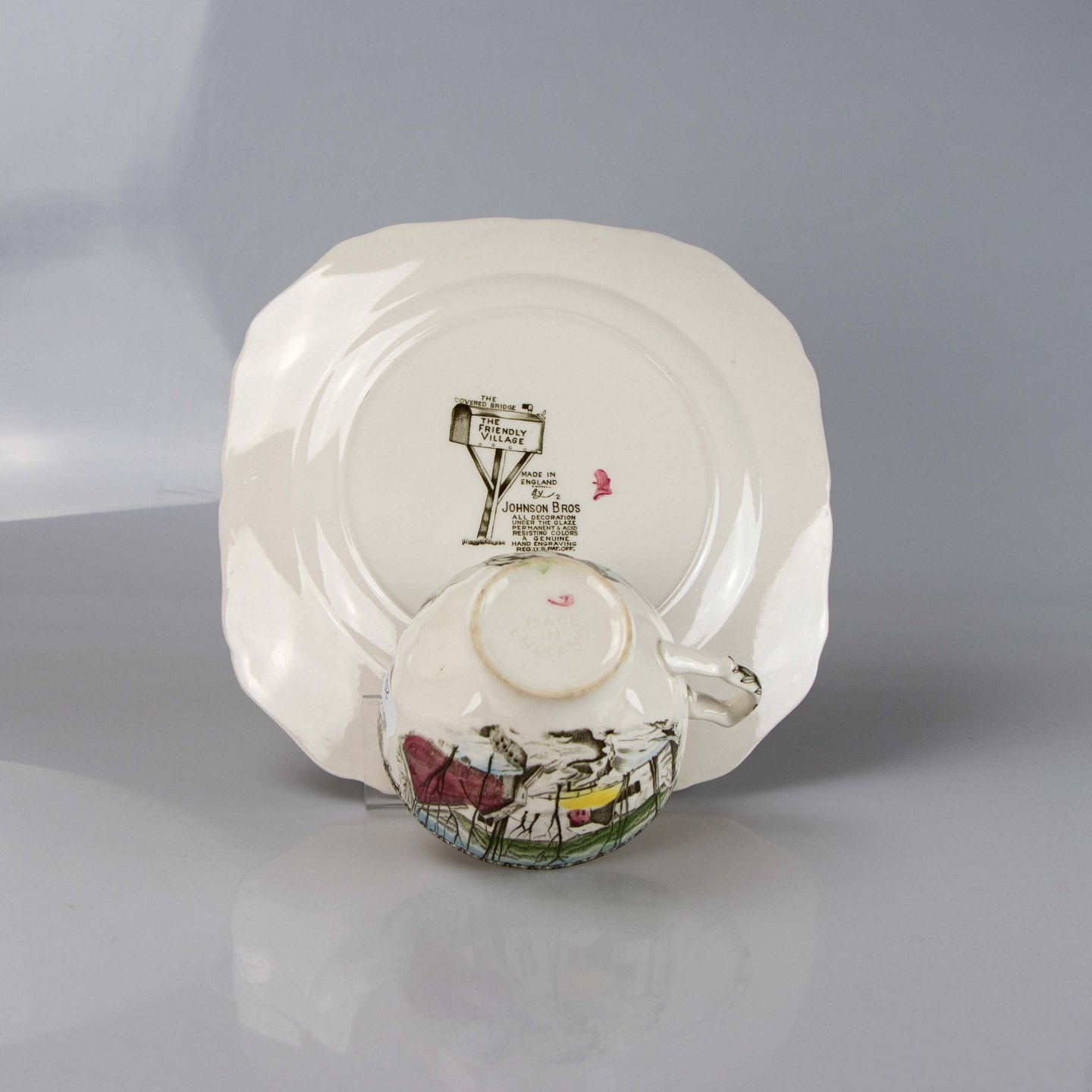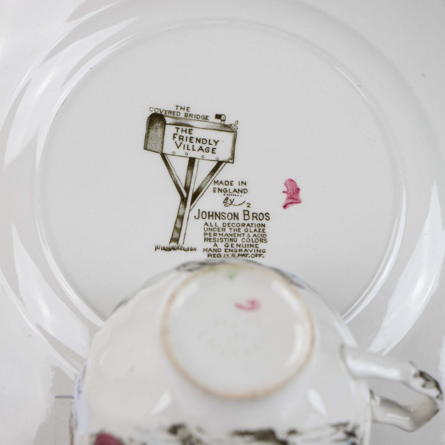 Tv-tallerken med kop i engelsk fajance fra stellet The friendly village