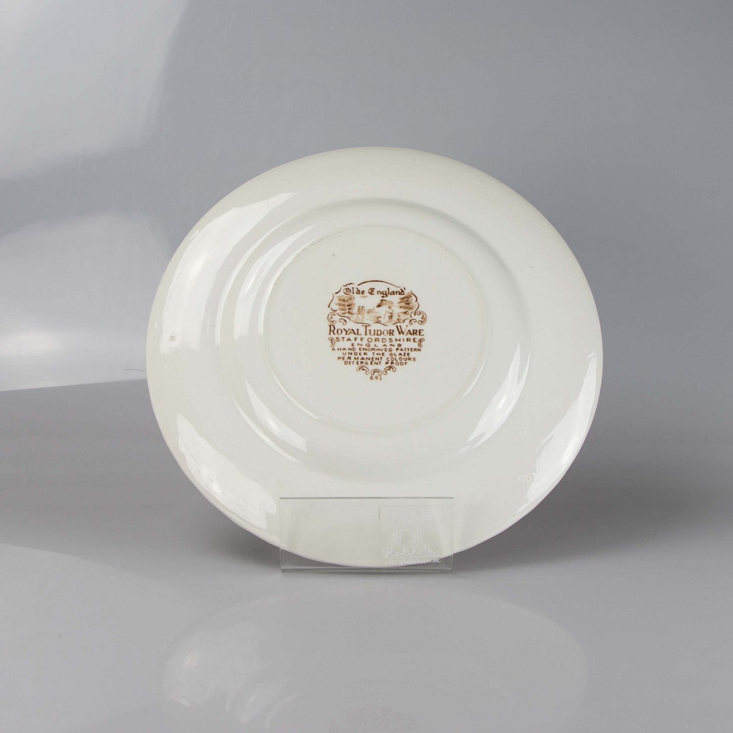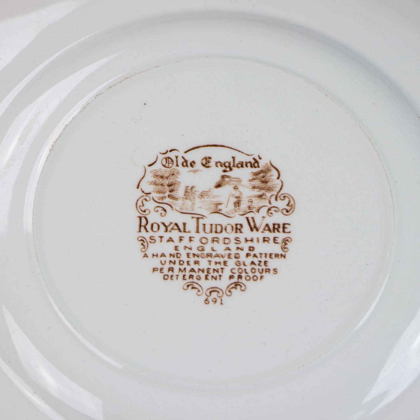 Flad tallerken i engelsk fajance fra stellet Olde England, Royal Tudor Ware nr. 691