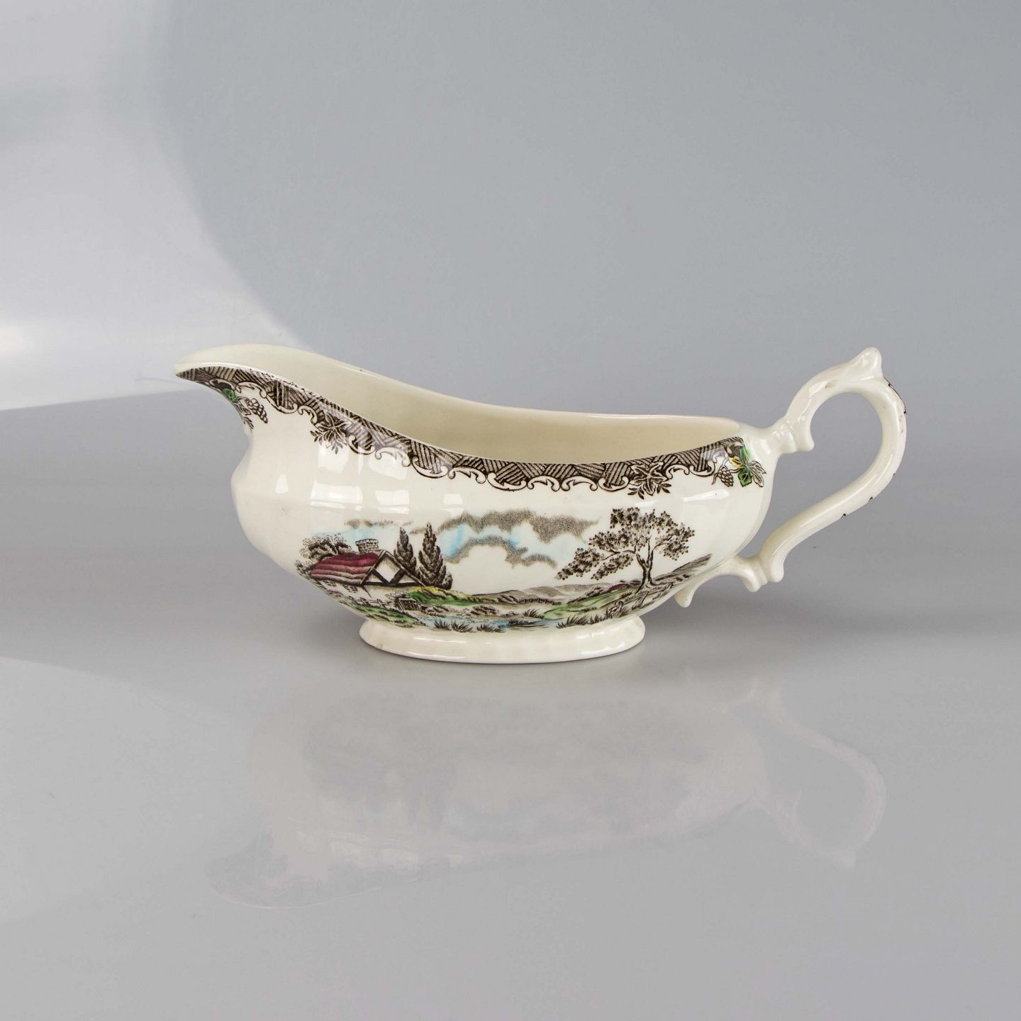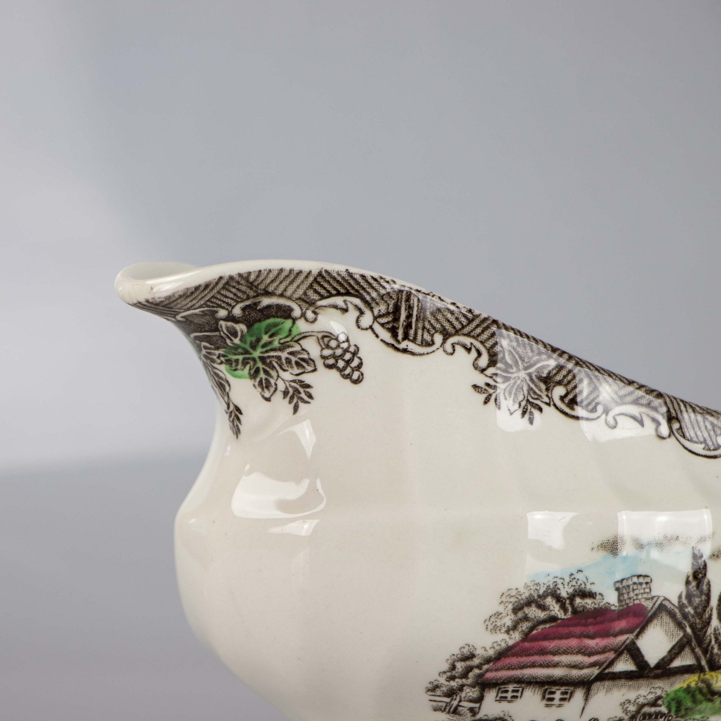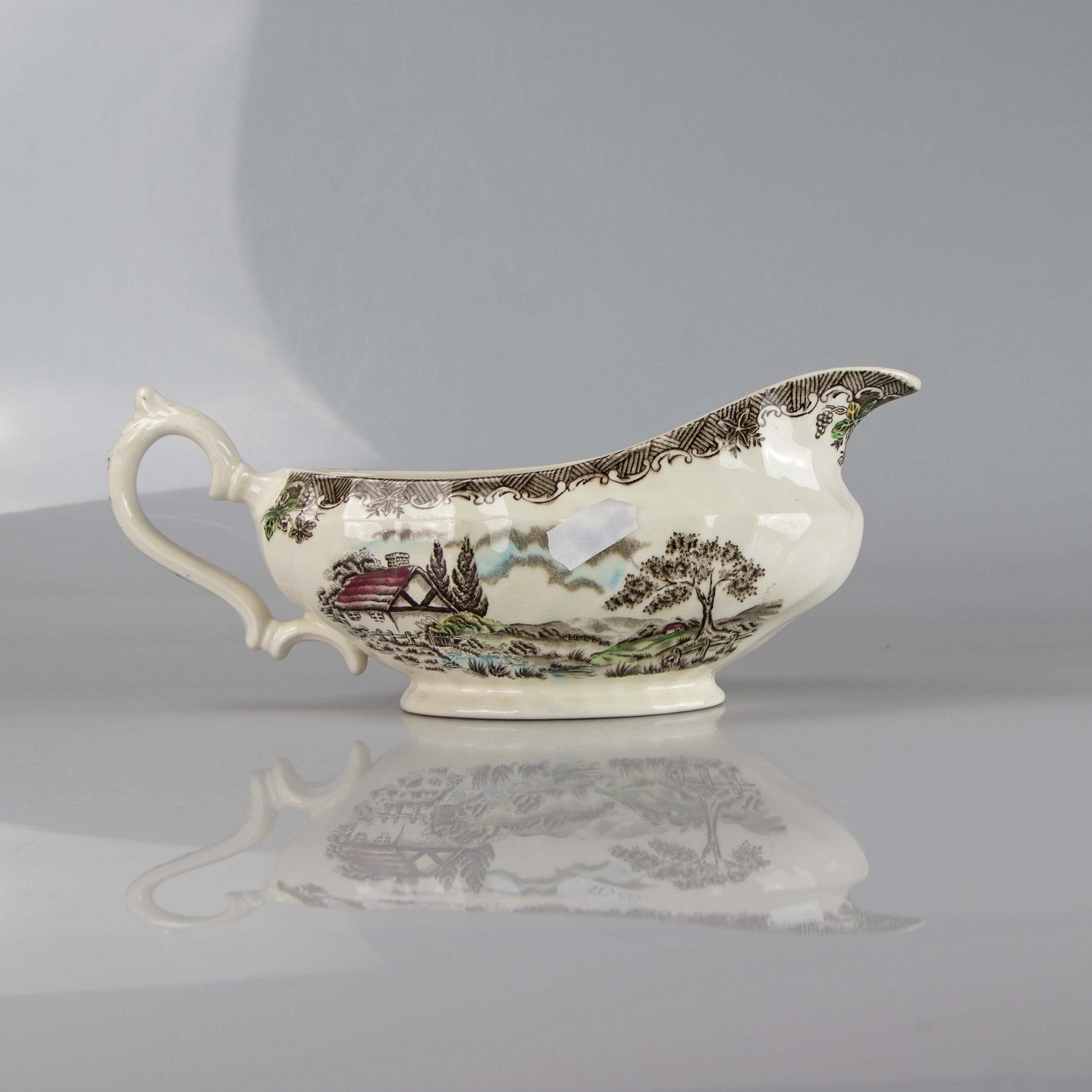 Sovseskål i lys fajance med multifarvet landligt motiv.