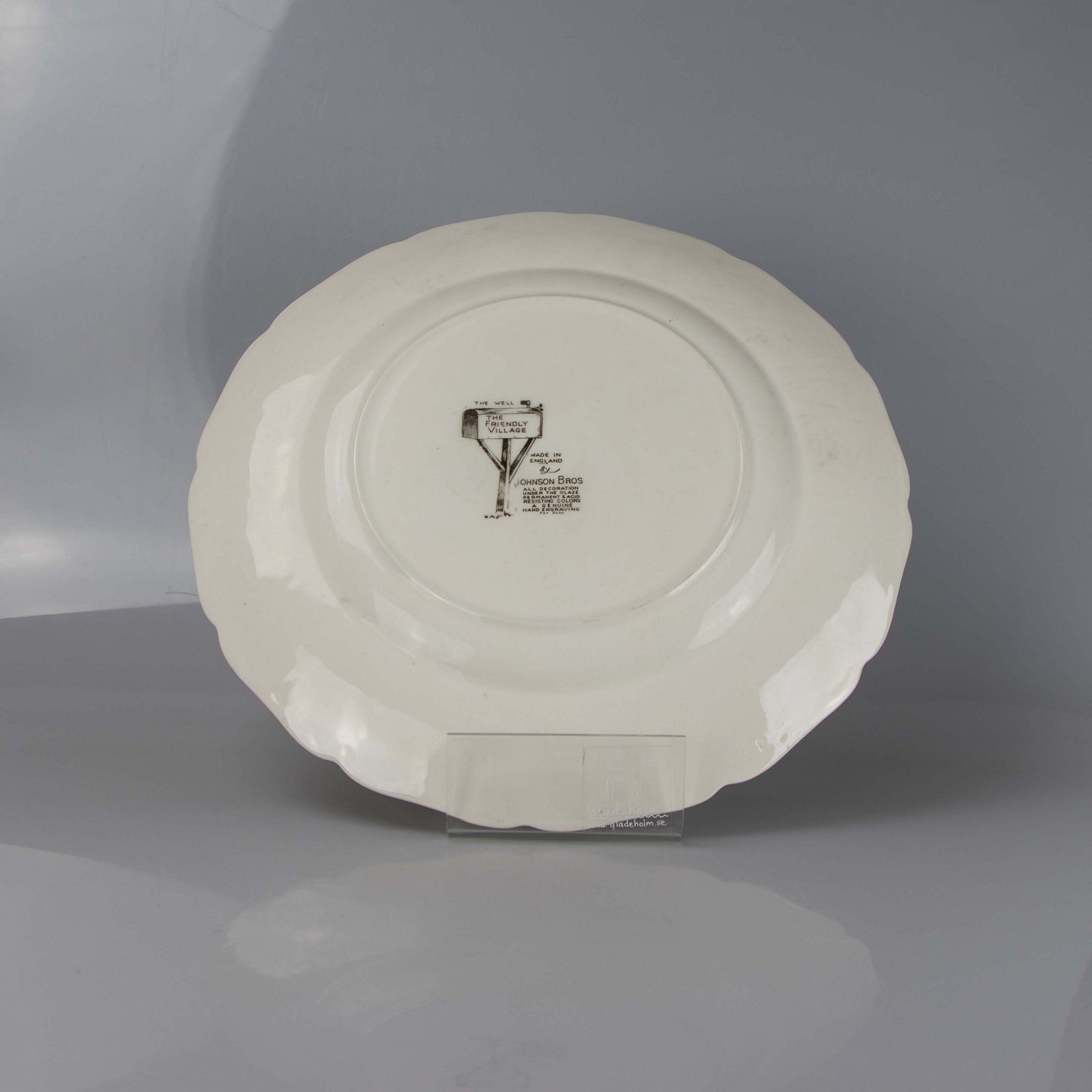 Stor middagstallerken i engelsk fajance fra stellet The Friendly Village