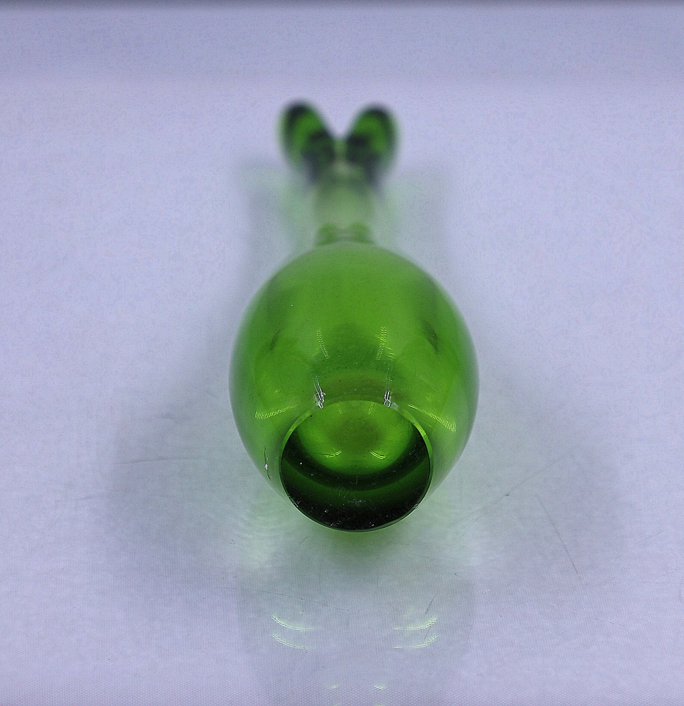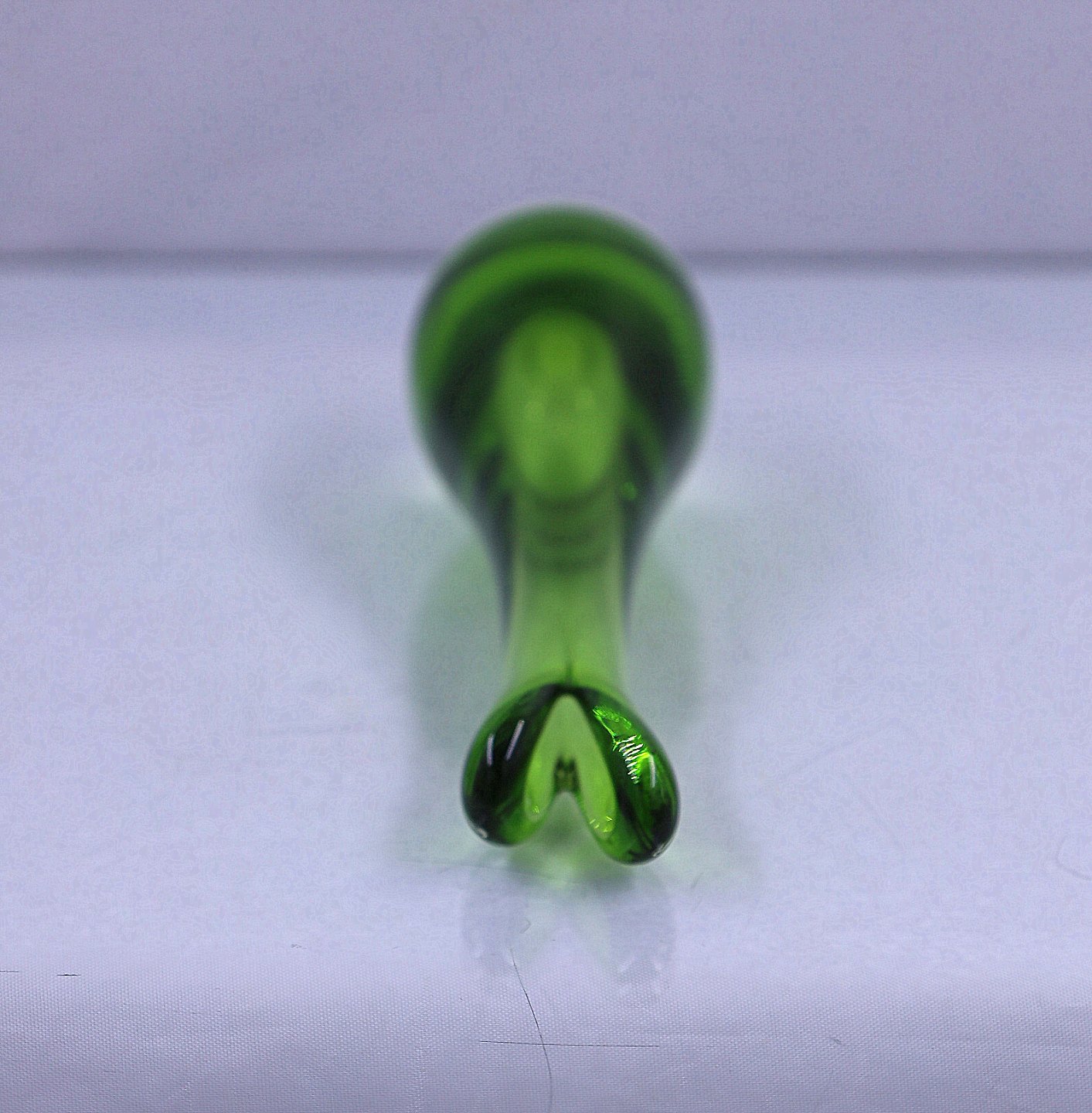 Holmegaard Glasværk. Næbvase/Duckling, grøn. Vasen har dråbeformet krop, opdrevet farve og kugleslebet bund.
